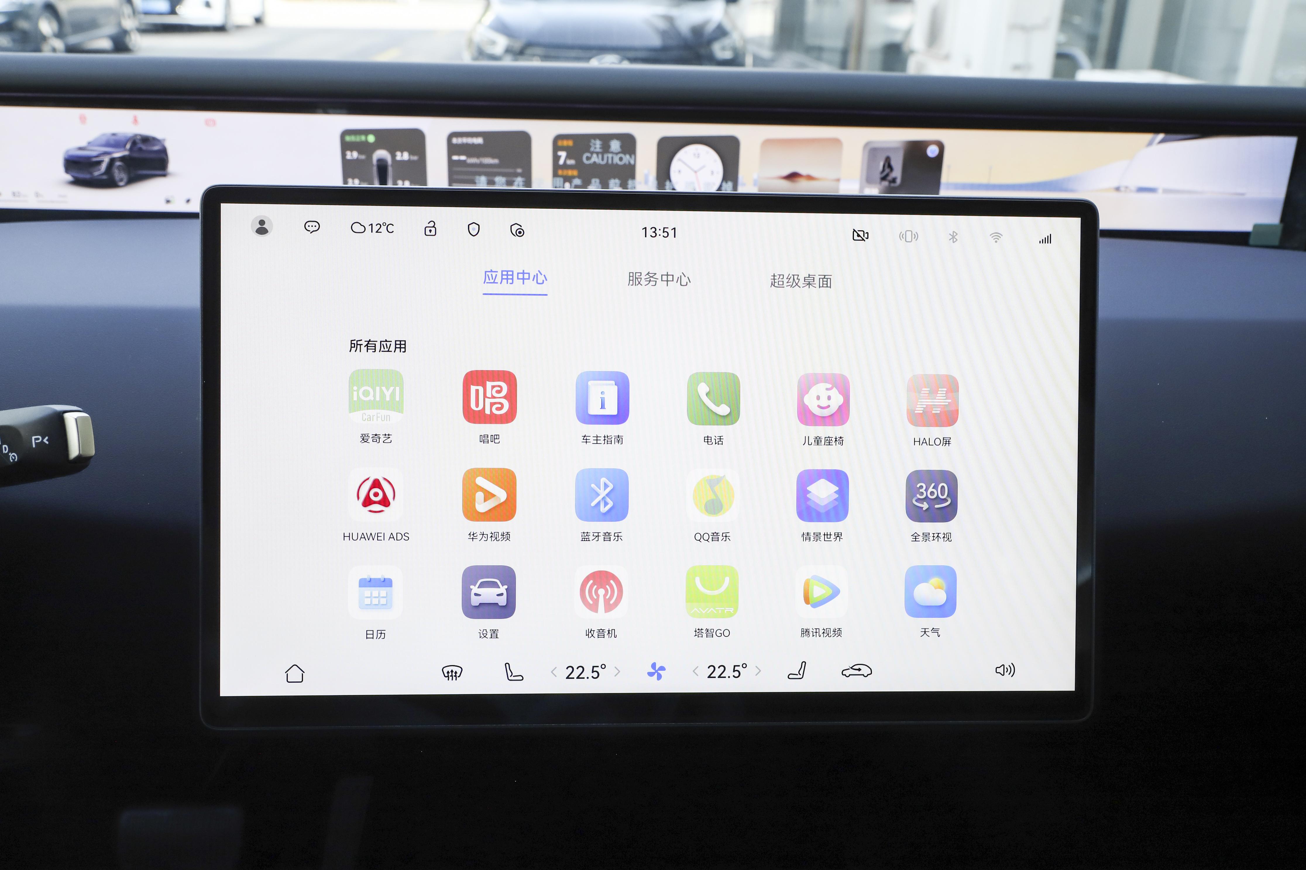 阿维塔 07的内饰采用了数字环拥设计布局,整体的用料材质十分厚道,紫色的内饰配色加上大面积的皮质包覆,提升了一定的豪华氛围感,上下平底样式的三幅式多功能方向盘造型小巧精致,握感较为出色,支持上下前后四向电动调节功能,并带有记忆和加热功能,35.4英寸的全景远端屏分辨率达到了4K,不仅显示效果清晰细腻,而且具有较强的视觉冲击力,中控台则搭载了一块带有HarmonyOS车载智能系统的15.6英寸悬浮式液晶屏,支持手机App远程控制、Petal地图导航、蓝牙/车载电话、HUAWEI HiCar、车联网、OTA升级、面部识别、语音识别控制系统以及第二排语音唤醒识别功能,整体的智能化表现还是挺丰富的。换挡形式采用的是电子式怀挡,并在前排扶手处配备了手机无线充电和2个USB/Type-C的多媒体接口,对于多个电子产品的补能还是非常方便的。
