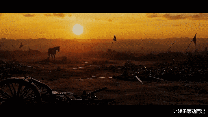 一个典型案例是:黄昏萧瑟的战场,残破的旗子,一匹孤马远远走过。这个镜头,在开拍前就用AI确定了。“如果没有AI,摄影指导需要一块开阔的场地、绝佳的黄昏光效;美术指导要布置大量废墟道具;执行制片得去找那样的战马。而AI用极低的成本,帮助我们锁定了调性和气氛。”