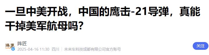 阵匠:一旦中美开战,中国的鹰击-21导弹,真能干掉美军航母吗?