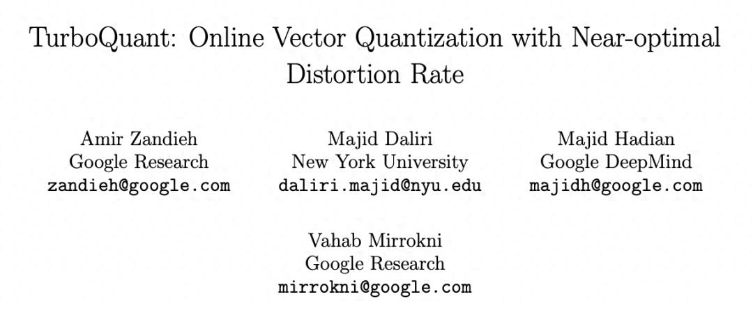 在 NVIDIA H100 GPU 上的测试中,4 比特精度的 TurboQuant 在计算注意力 logits 时取得了相比 32 位未量化基线高达 8 倍的性能提升。这篇论文将于下月在 ICLR 2026 上正式发表,第一作者 Amir Zandieh 是 Google Research 的研究科学家,通讯作者 Vahab Mirrokni 是 Google Research 副总裁兼 Google Fellow。