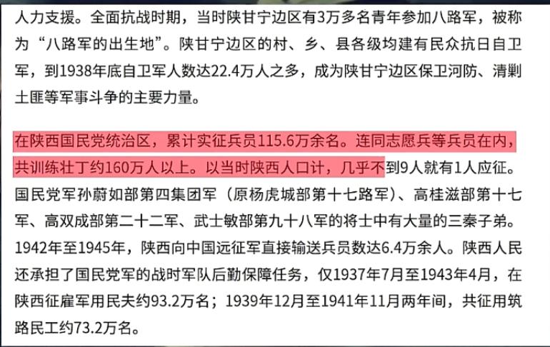 陕西不只是挡着,还往外送人。抗战八年,陕西往前线送了115万兵,差不多每九个陕西人里就有一个扛枪上战场。延安在那,精神在那,人就在那。