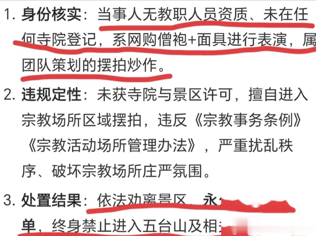 终身禁止进入五台山和相关宗教场所。这招挺准,直接把这帮人的天然影棚给封死了。断了他们在这个山头的财路,可仔细一琢磨,五台山是进不去了,那其他地方呢。只要这套把流量变现的逻辑还在,只要还有人信短视频里包装出来的“神仙”。