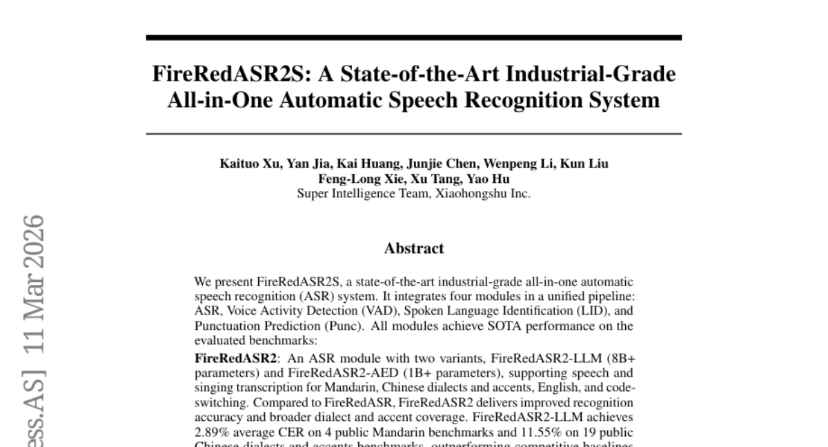 日常生活中,我们经常遇到这样的情况:想要把语音转换成文字,或者需要从一段录音中找出有人说话的部分。传统的语音识别工具往往像是拼凑起来的"杂牌军",各个部件来自不同厂商,配合起来磕磕绊绊。小红书的研究团队决定解决这个问题,他们开发出了一套名为FireRedASR2S的完整语音识别系统,就像是为语音处理量身定制的"瑞士军刀"。
