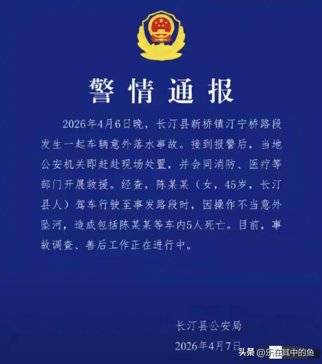事故发生之后,长汀县公安局很快发布了警情通报,确认了司机是45岁的陈某某,因为操作不当导致车辆意外落水。