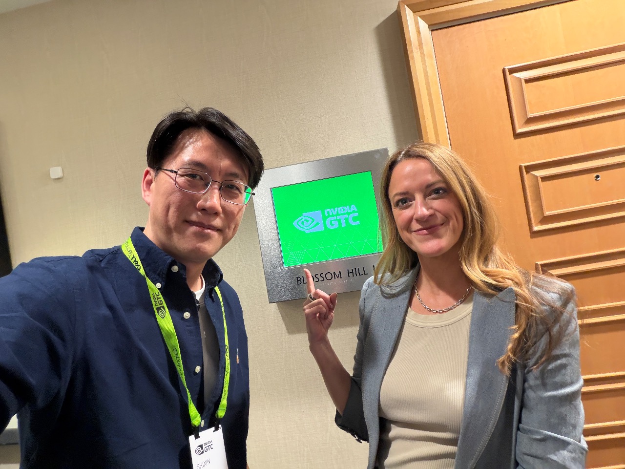 NVIDIA AI 软件副总裁 Kari Briski(右)、至顶科技CEO高飞(左)