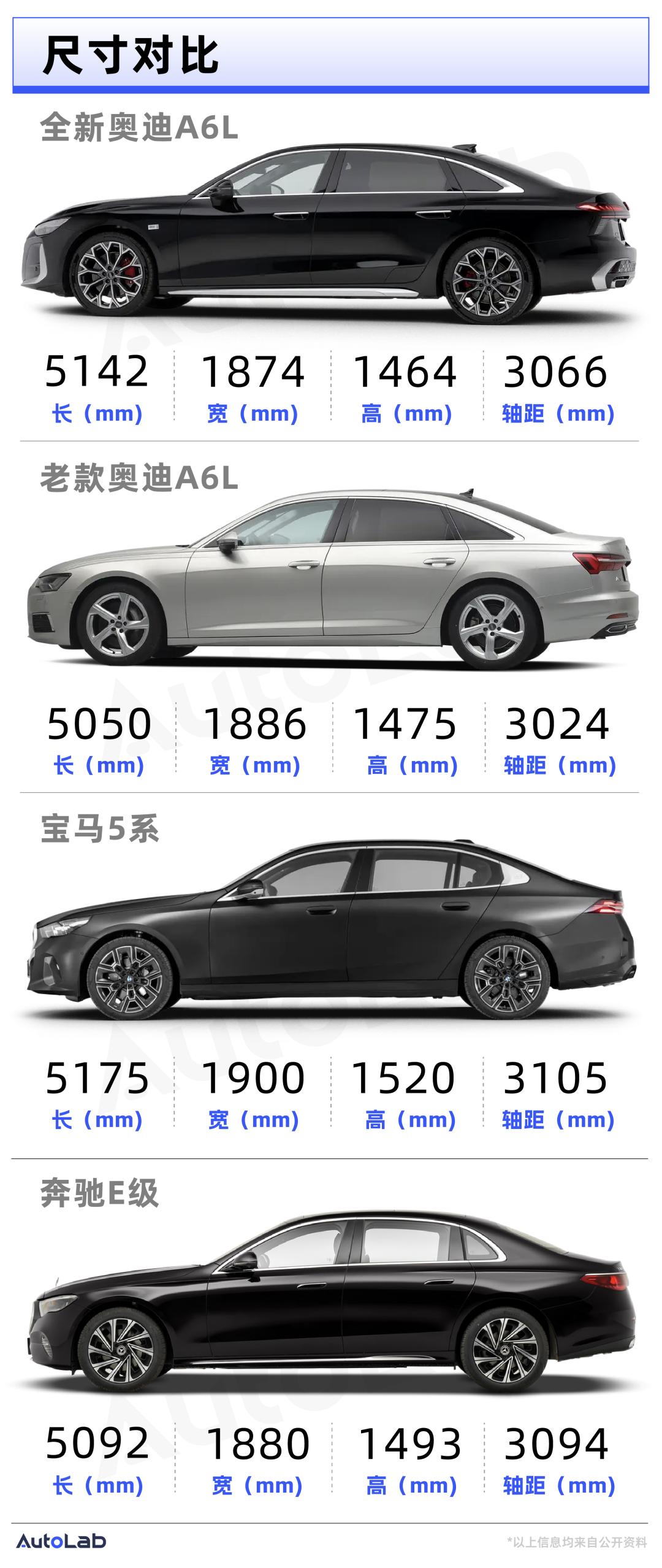 当然,我们也将它和宝马5系和奔驰E级进行了对比,可以看到即使在经过大幅加长后,它在轴距方面依旧略逊于两位“老对手”。