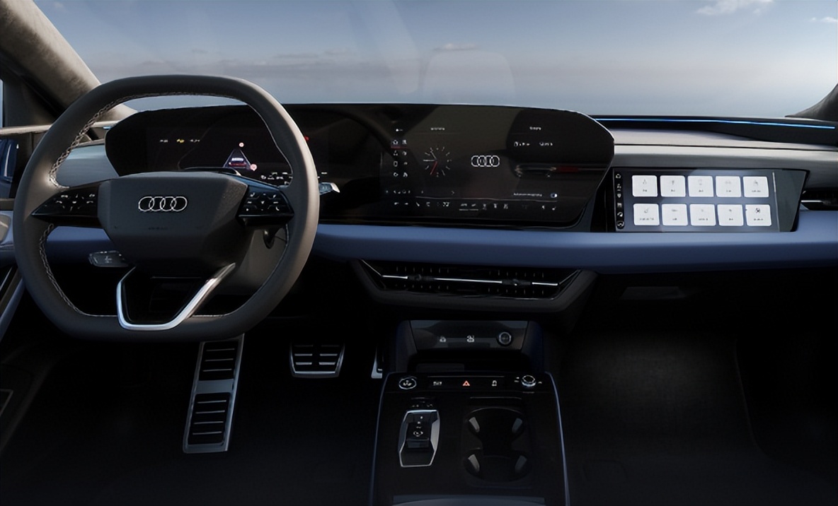 全新A6L则是更进一步,将依旧维持三块屏幕的设计,但是将屏幕整体的位置都上调至仪表台的最上方,向新能源车的设计看齐。