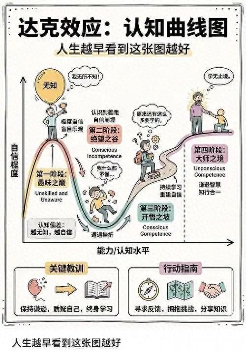 注:该模型源自1999年邓宁与克鲁格的实验研究,虽非严格心理学分类体系,但已成为认知心理学领域广泛接受的通俗化表达。