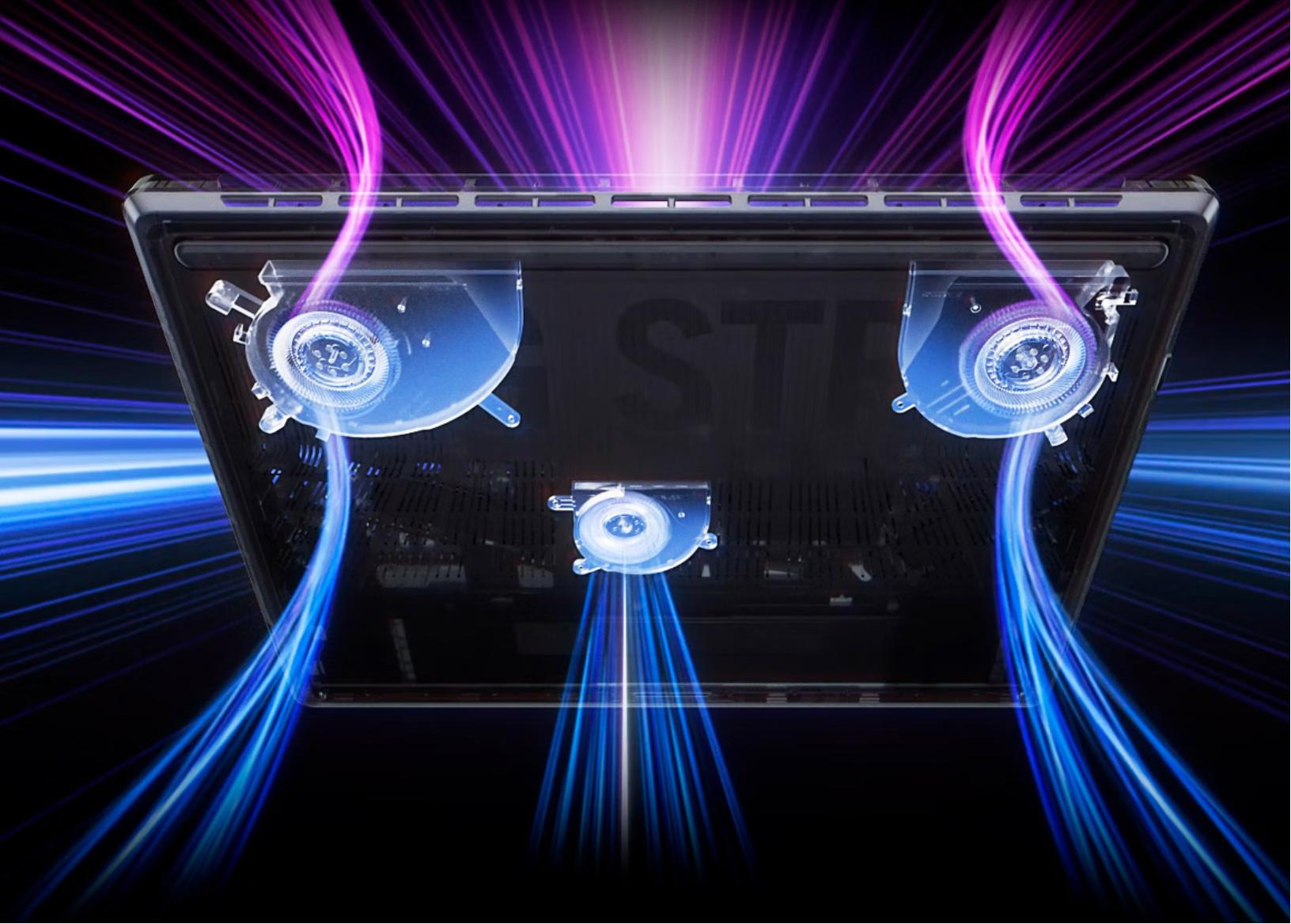“冰川散热架构3.0 增强版”加持的ROG魔霸新锐2025,有三风扇内吹,加上覆盖CPU和GPU的大面积均温板,甚至给CPU用上了第二代暴力熊液金导热。这套系统能让整机在双烤时实现最高195W的性能释放。简单说,就是长时间激烈游戏,性能也不会因为过热而大幅衰减,键盘区域的温度也控制得比较理想,不会变成“铁板烧”。这对于动辄几小时的游戏马拉松或者视频渲染任务来说,是实打实的体验保障。