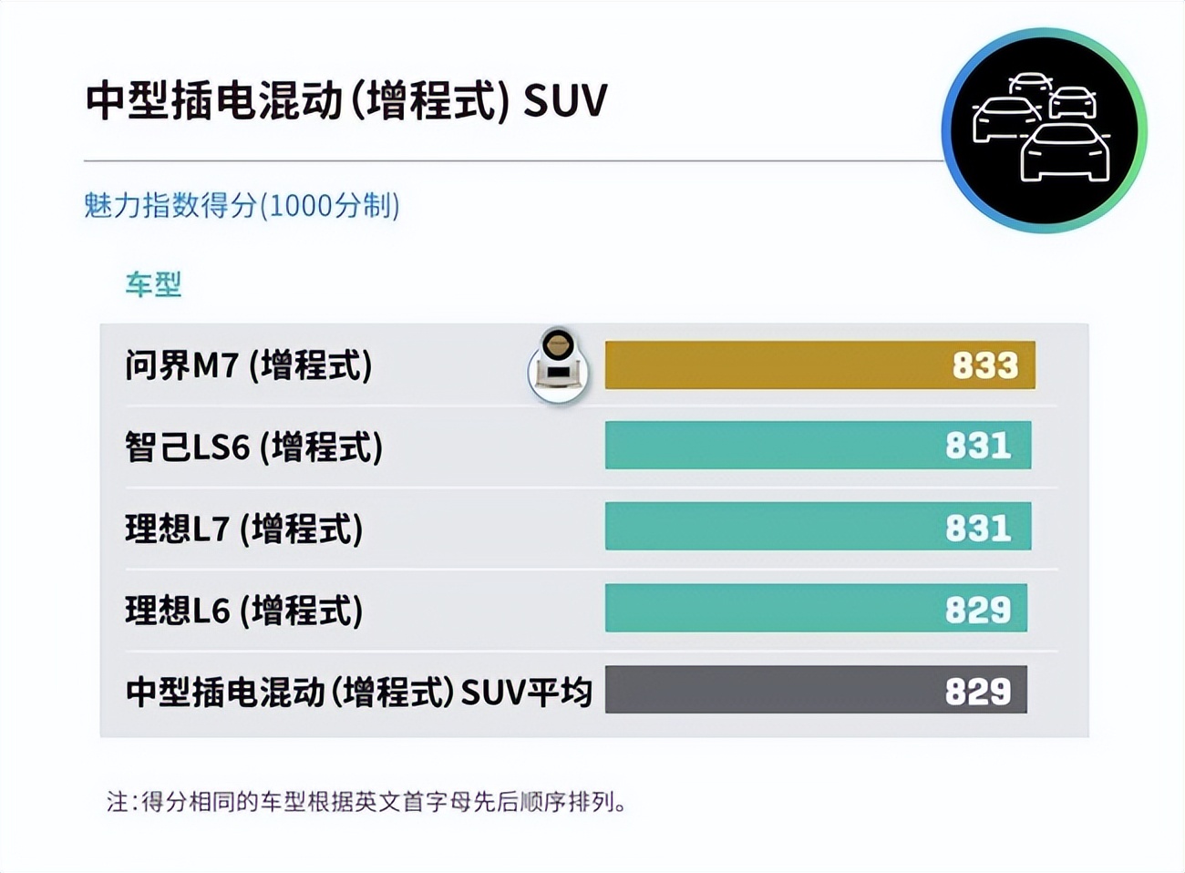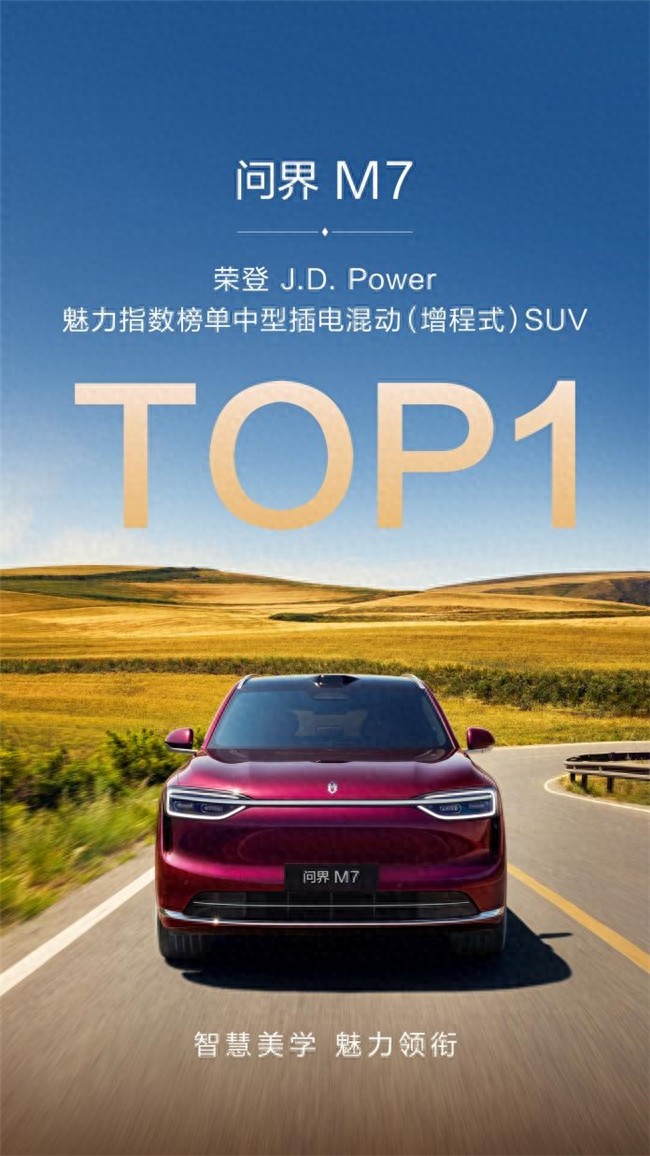 3月26日,全球知名消费者洞察与市场研究机构J.D. Power(君迪)正式发布2026中国新能源汽车产品魅力指数研究报告。问界M7凭借出众的综合产品力,以833分(1000分制)的优异成绩,一举夺得中型插电混动(增程式)SUV魅力指数第一名,再度用权威认证印证其在细分市场的领先地位。