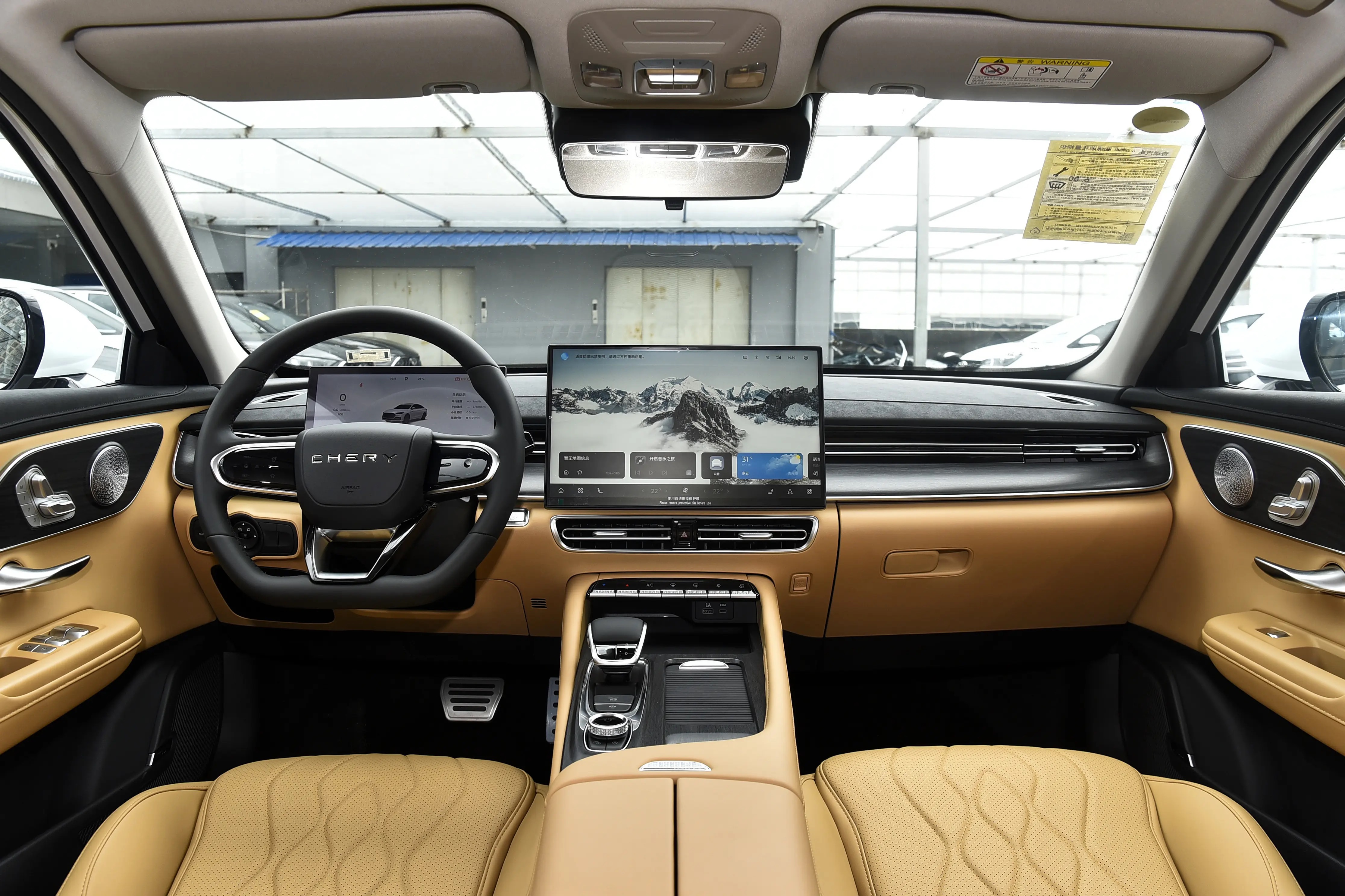 内饰颜色有黑色和棕色可选,我个人比较喜欢棕色内饰的豪华感,中控布局简洁富有科技感,10.25英寸全液晶仪表不仅信息丰富而且还可以切换模式,皮质多功能方向盘集成了触摸式按键,车载智能芯片用的是高通骁龙8155,15.6英寸2.5K分辨率支持导航,3种手机互联,车联网,4G网络,OTA升级等功能,L2级智能驾驶辅助系统也给配备了。