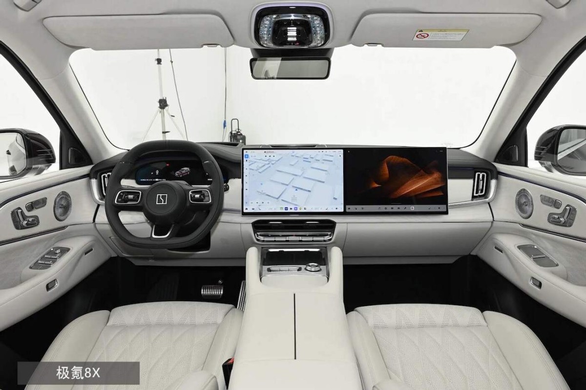在座舱方面,两款车都拥有双8295芯片为基础的平台支撑,而且在屏幕组合方面几乎也是相同的,极氪8X并没有因为定位更低、更侧重家用就降低规格。