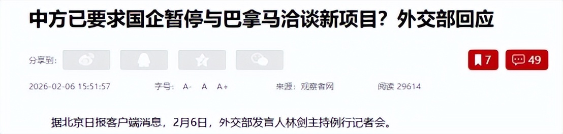 对巴拿马,中国开始反击了! 信息来源: 信息服务部 发布时间: 2026-02-09