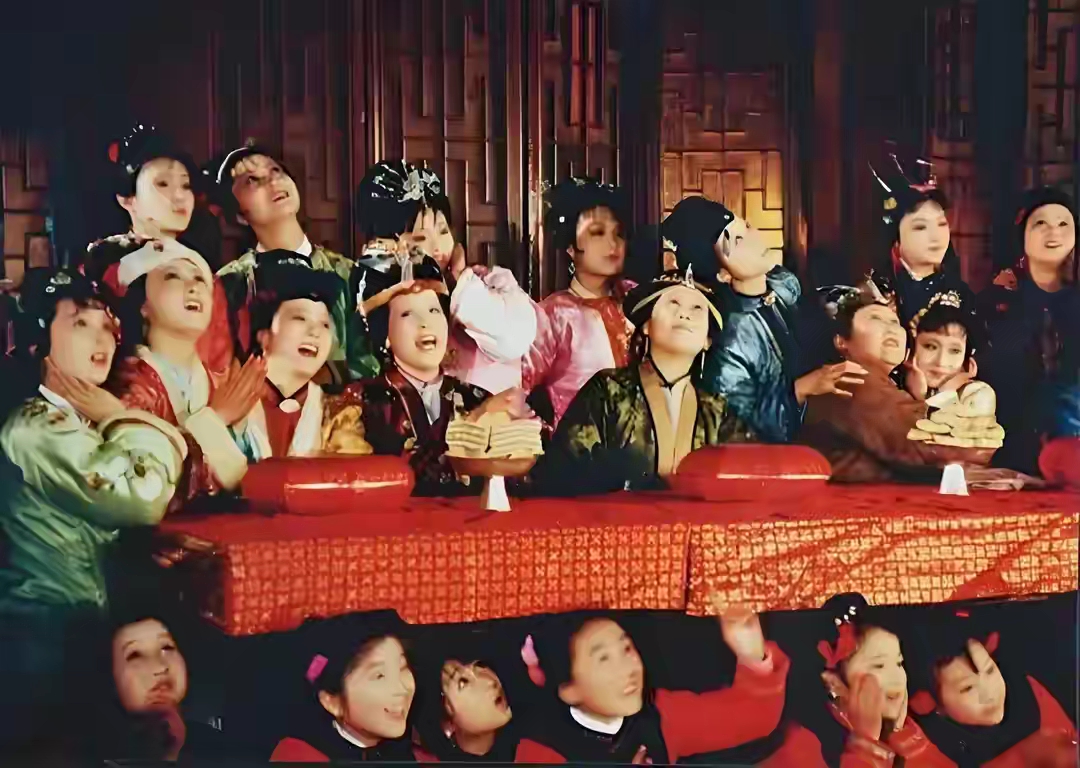中间还穿插了吃元宵、行酒令、听书等环节,简直是把享乐推向了顶峰。尤氏、鸳鸯这些大管家媳妇忙前忙后,宝玉和姐妹们说说笑笑,黛玉和宝玉更是形影不离。凤姐更是耍宝逗乐,一会儿假装要罚宝玉,一会儿又给老太太夹菜,全场气氛被她拿捏得死死的。