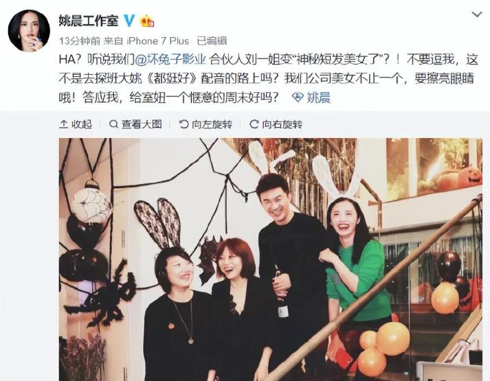 当时让不少人都以为老曹是不是有了新欢,不过姚晨很快就出来辟谣了,说这个人是自己公司的合伙人,而且他们两人是在去探班姚晨的路上。