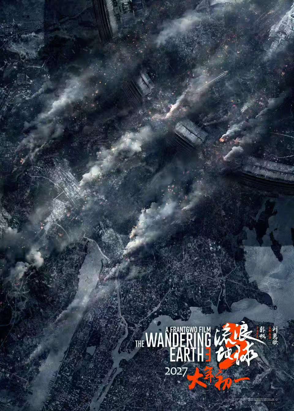 片子分上下两部拍,叫“连拍”模式。上部叫《飞向比邻星》,已经定在2027年大年初一上映。下部可能隔半年,在2027年夏天或者2028年春节上。这样挺好,不用像等第二部那样等好几年。