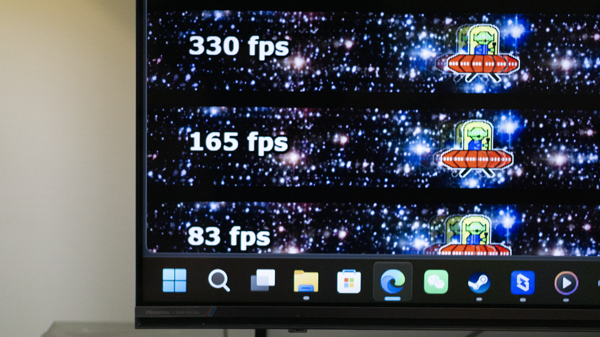 除了不错的颜色外,海信E7S Pro还支持4K 330Hz的刷新,就这个刷新而言,它已经胜过了当下不少电竞显示器了。