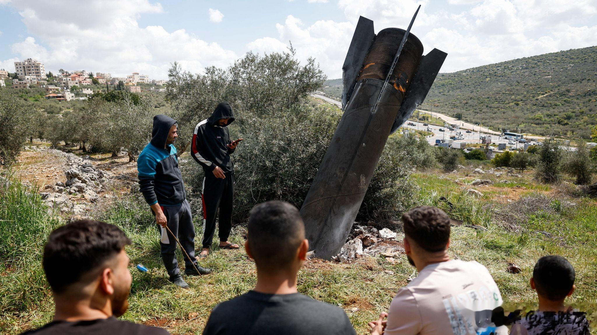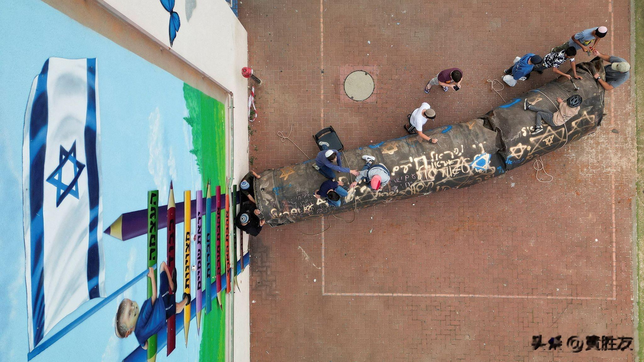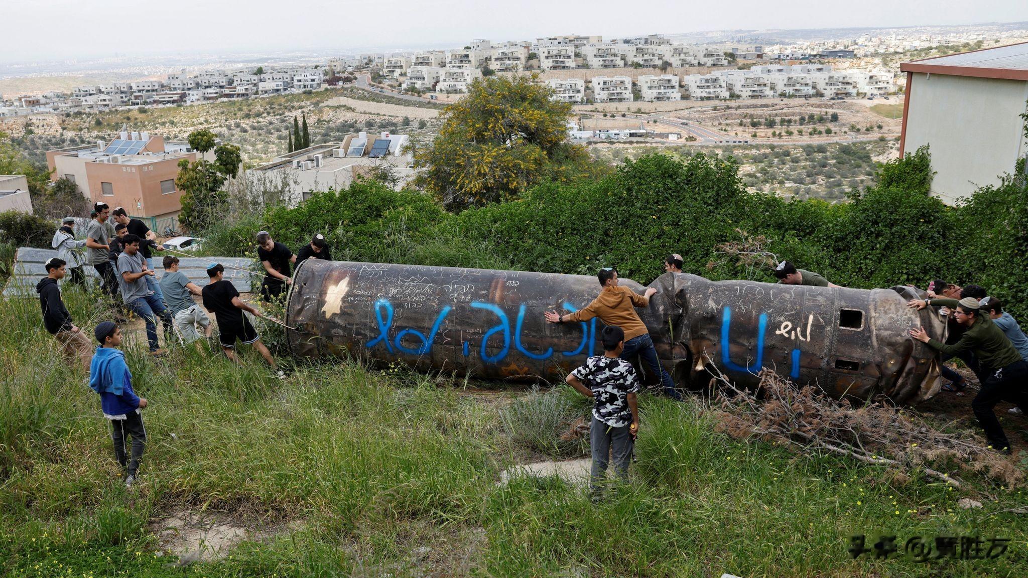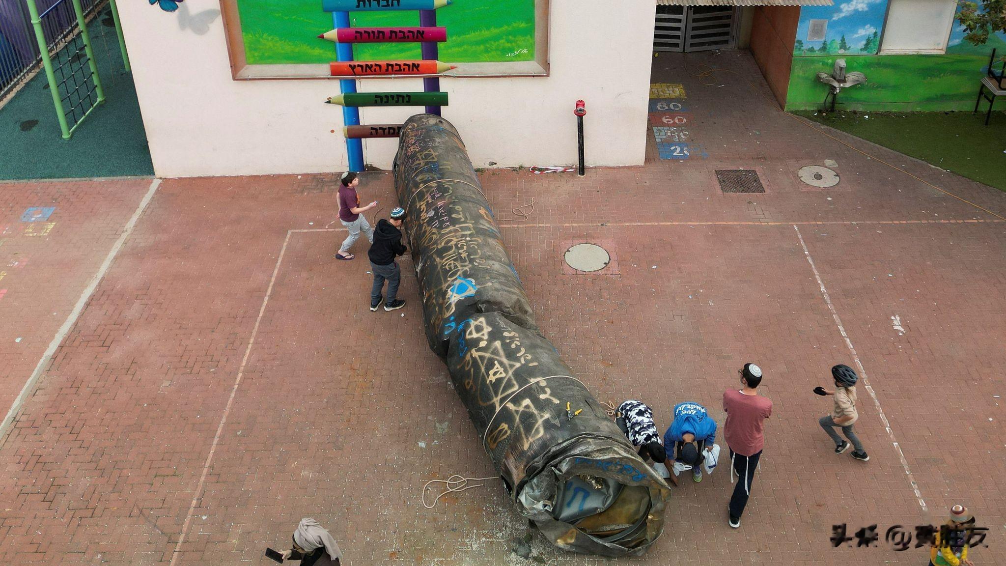 一枚导弹的部分残骸落在了约旦河西岸佩杜埃尔以色列定居点的一所幼儿园操场上。图片来源:路透社
