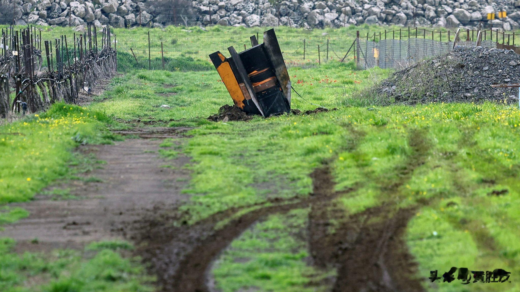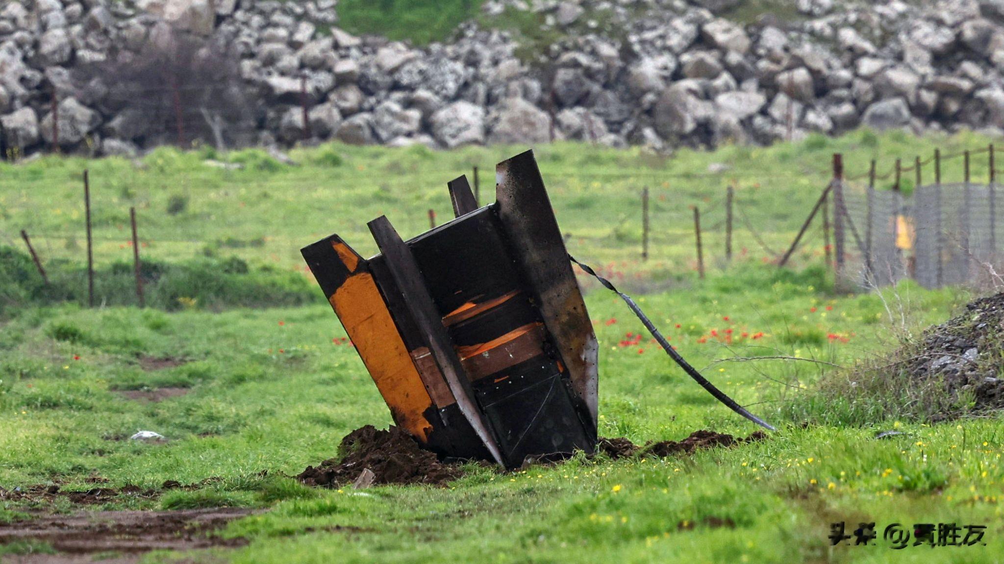 以色列占领的戈兰高地一枚导弹的尾翼。图片来源:路透社