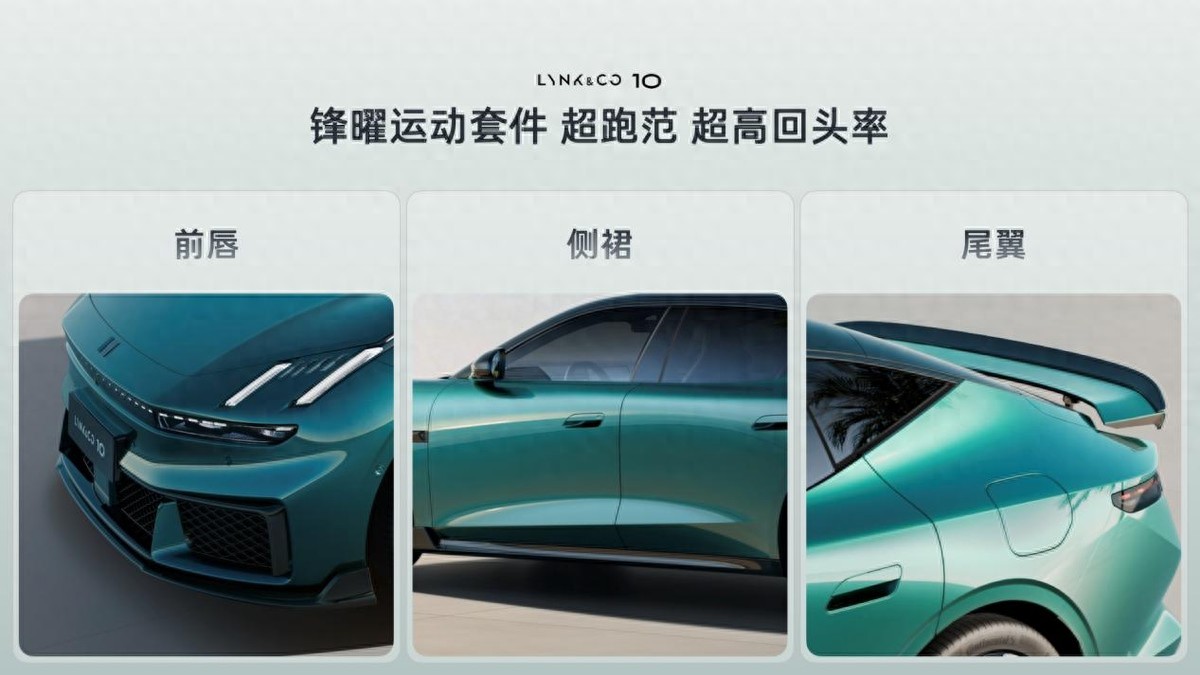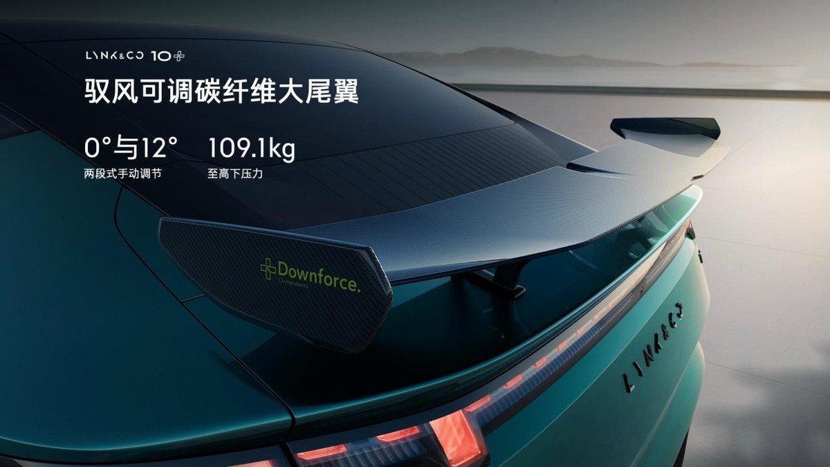 领克10+搭载同级唯一驭风可调碳纤维大尾翼,支持两段式手动调节,可提供至高109.1kg下压力,高速行驶更稳、连续过弯更准。21英寸凌风锻造轮毂、锋刃棱纹前格栅、隐藏式主动进气格栅,进一步优化空气动力学表现。