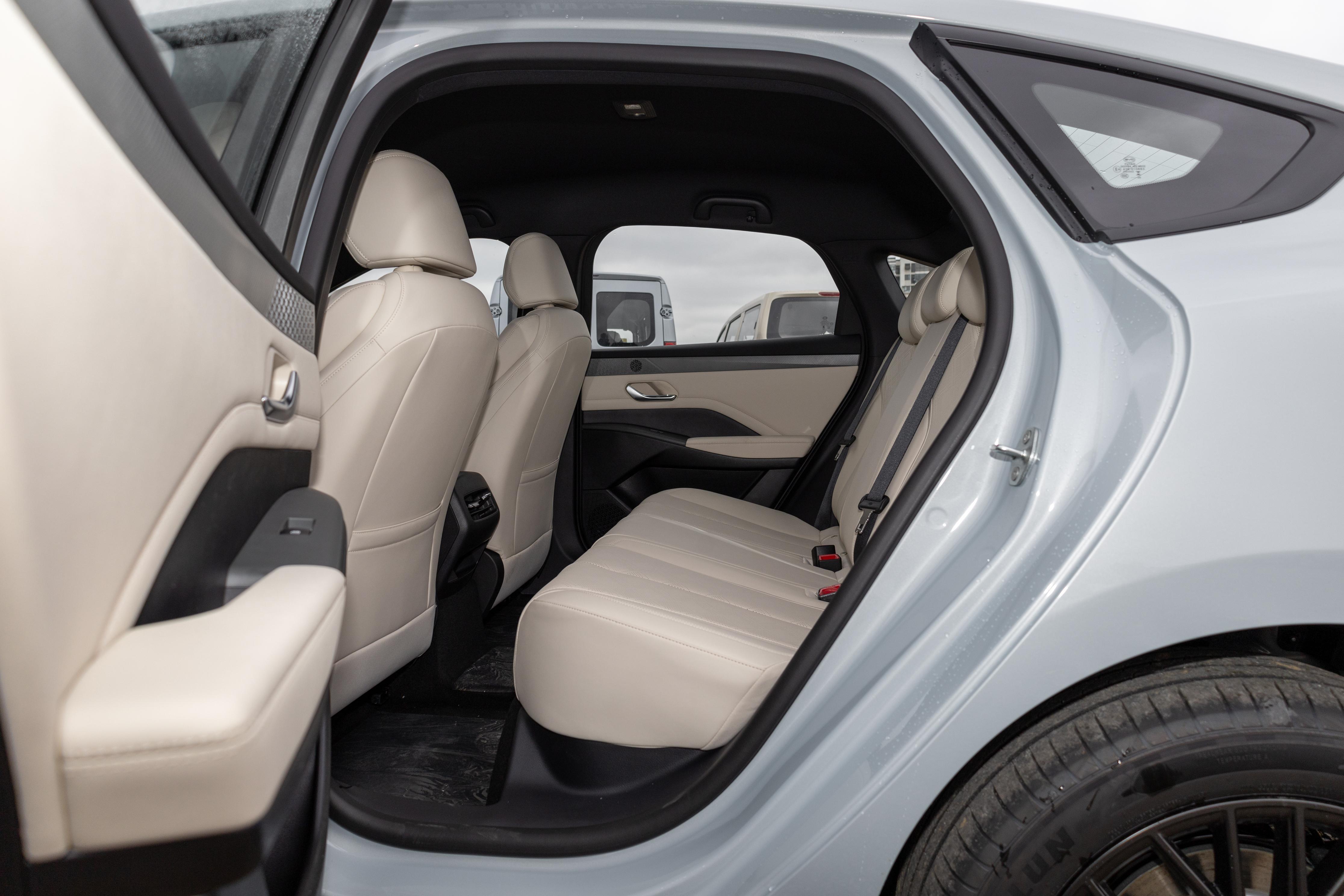 作为家用车而言,乘坐空间是比较重要的,这两台车均定位是紧凑型车,车身结构为4门5座三厢车,零跑B01的车身长宽高分别为4770x1880x1490mm,轴距为2735mm,整车座椅采用的是仿皮的材质,主副驾驶位均支持电动调节功能,并且还带有加热功能,主驾驶位还多出了通风功能,进一步的提升了乘坐舒适性,第二排的乘坐空间表现非常宽敞,小编身高175cm,体重60kg,坐进第二排后,腿部空间还有2拳半出头的富余,这样的表现已经达到了越级的水平了,加上纯平的地台处理,后排即使在满员状态下也不会觉得拥挤。行李舱的日常容积为460L,后排座椅支持按比例放倒功能,可以扩展更大的载物空间。