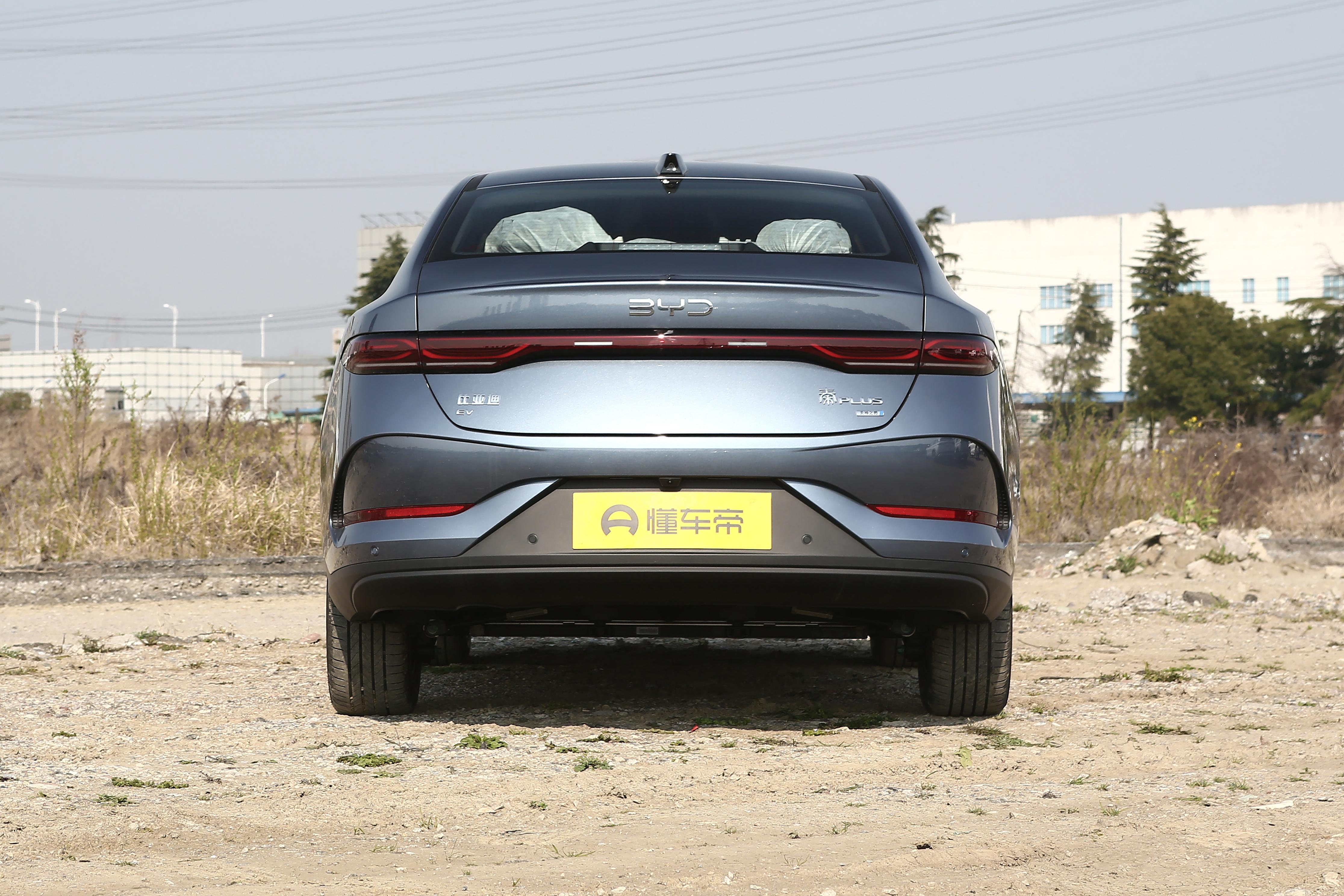秦PLUS EV的外观造型采用的是比亚迪家族式的Drangon Face的设计语言,融入了些许龙颜元素,具有较强的中国风设计,前脸上半部分为封闭式的大包围,下半部分为进气格栅,增添了一定的层次感,两侧大灯造型时尚犀利,远近光均同样采用的是LED光源。车身侧面得益于接近4米8的车身长度显得较为修长,锋利的腰线设计十分凌厉,门把手采用的是传统的机械式造型,比较方便实用,前/后轮胎尺寸均为215/55 R17。车尾的造型紧凑动感,贯穿式的尾灯造型时尚美观,灯腔采用了熏黑式的处理,具有一定的辨识度,底部包围两侧弧形的线条处理增添了一定的层次感,同时还带有红色反光条,提升了夜间的行车安全性。