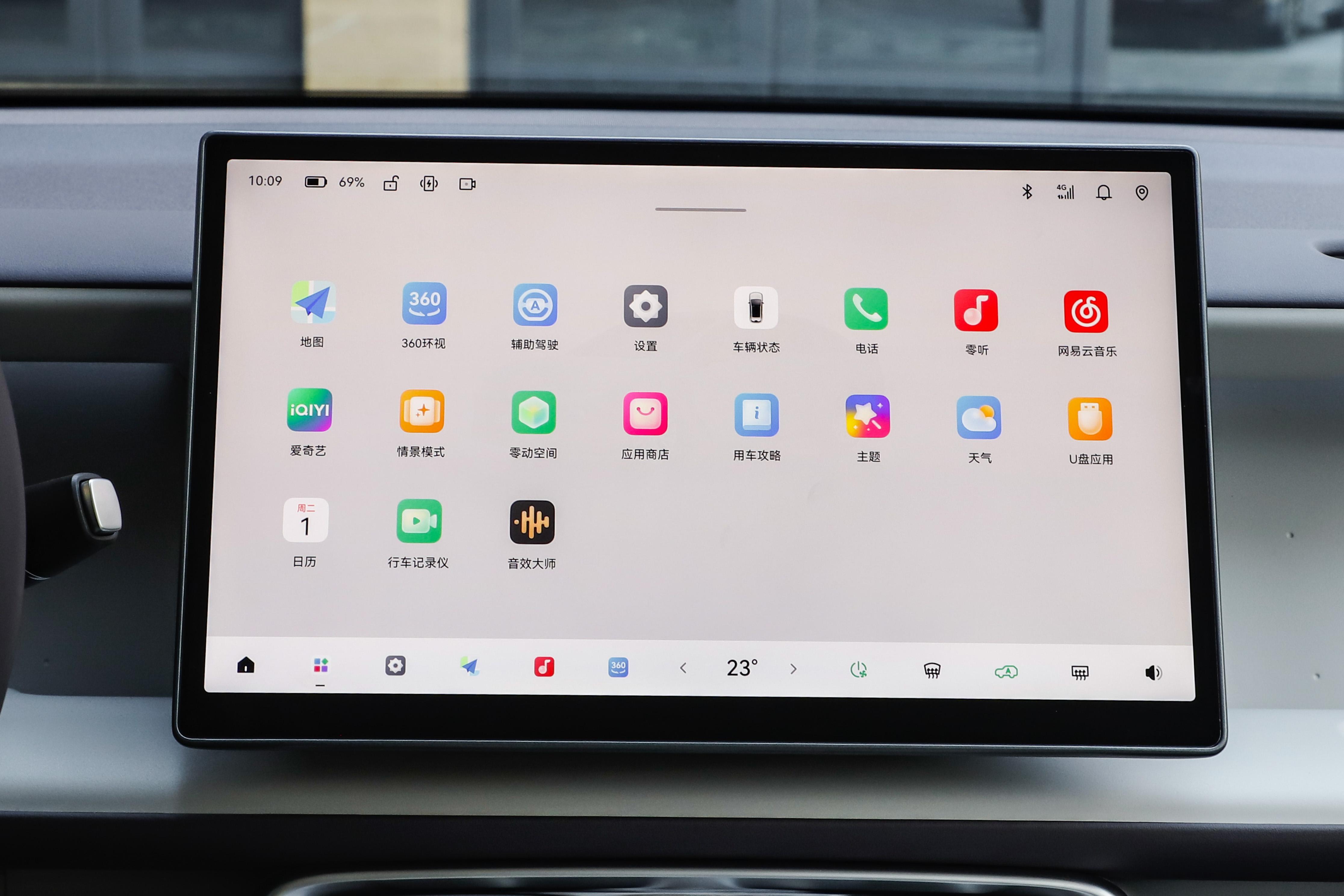 零跑B01的内饰采用的是T字型的布局方式,纤云灰的内饰配色突显出较强的居家温馨风格,车厢内采用了大量的软性材质以及皮质包覆,使其手能够触摸到的地方十分细腻,两幅式的多功能方向盘造型时尚美观,采用的是皮质的材质,支持上下前后四向调节功能,并带有加热功能,换挡形式为电子式怀挡,并在前排中央扶手处配备了手机无线充电功能以及2个USB/Type-C的多媒体接口,支持最大充电60W,给手机充电是比较快的。8.8英寸的全液晶仪表盘分辨率还算出色,可查看行车信息较为丰富,中控台则配备了一块14.6英寸的液晶大屏,分辨率达到了2.5K,搭载的是Leapmotor OS车载智能系统,并内置了高通骁龙8155车载智能芯片,智能化表现非常丰富,并且还带有Carlink以及HUAWEI HiCar手机互联映射功能,方便了日常的使用。