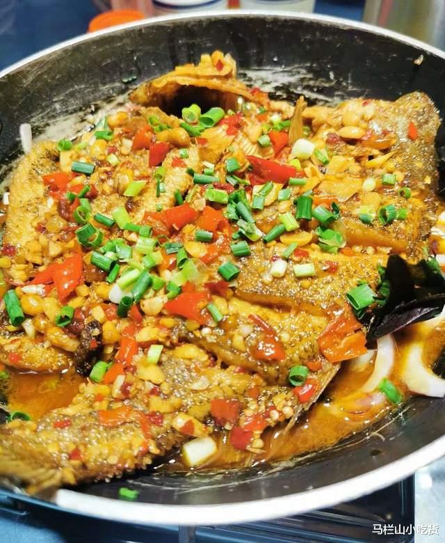平锅鲈鱼,新鲜的淡水鲈鱼,直接被煎制得两面金黄,再搭配小米椒和蒜香一起焖,吃起来鱼肉椒香,肉质紧致入味。