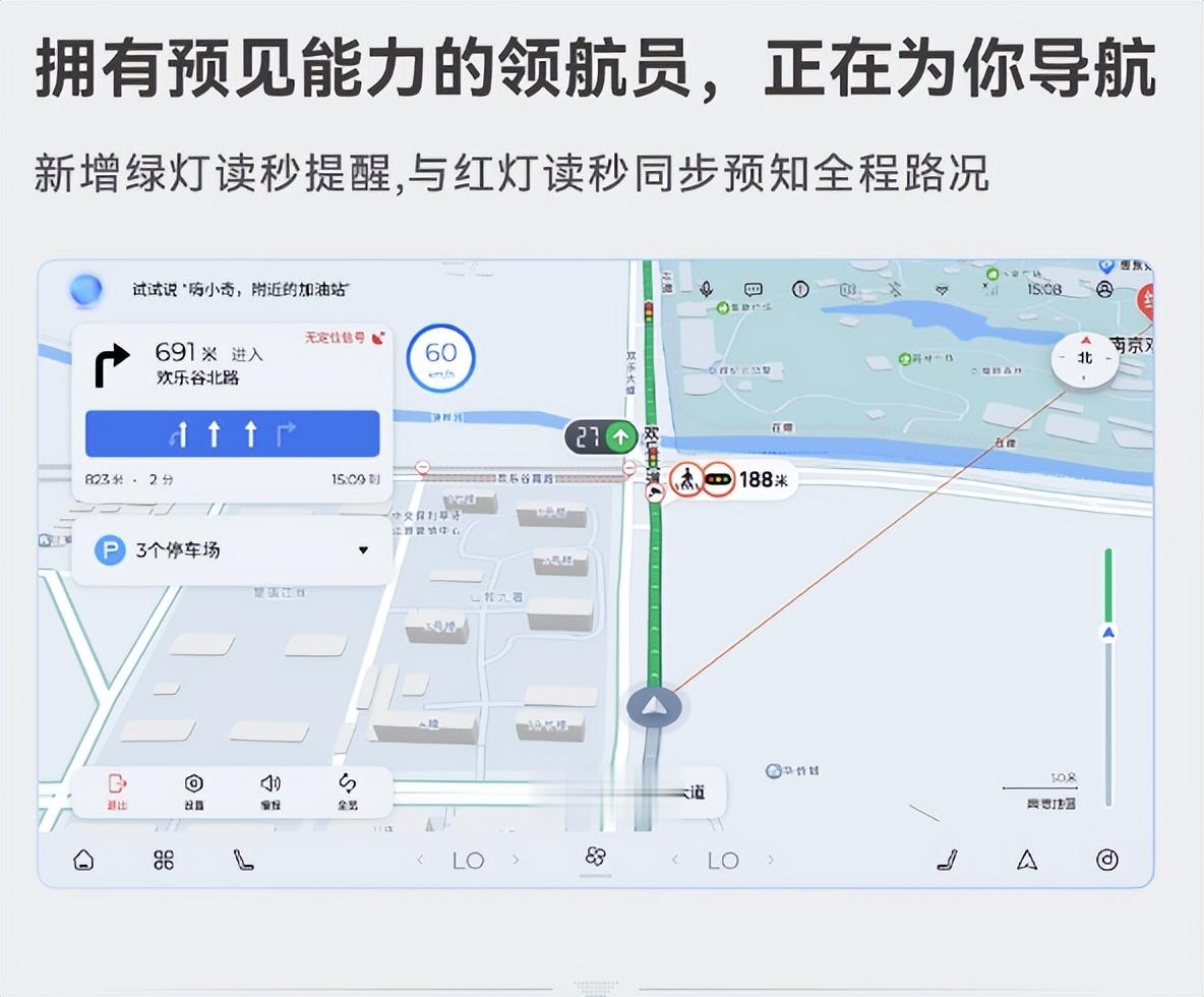 首先是风云A8L新增的绿灯读秒提醒功能,能实现红绿灯全周期预判。接近路口时,车机不仅同步红灯剩余时间,更精准预告绿灯亮起时刻,彻底告别“紧盯信号灯”的焦虑。起步无需仓促反应,跟车更从容,让城市通勤的每一段路程都尽显优雅。