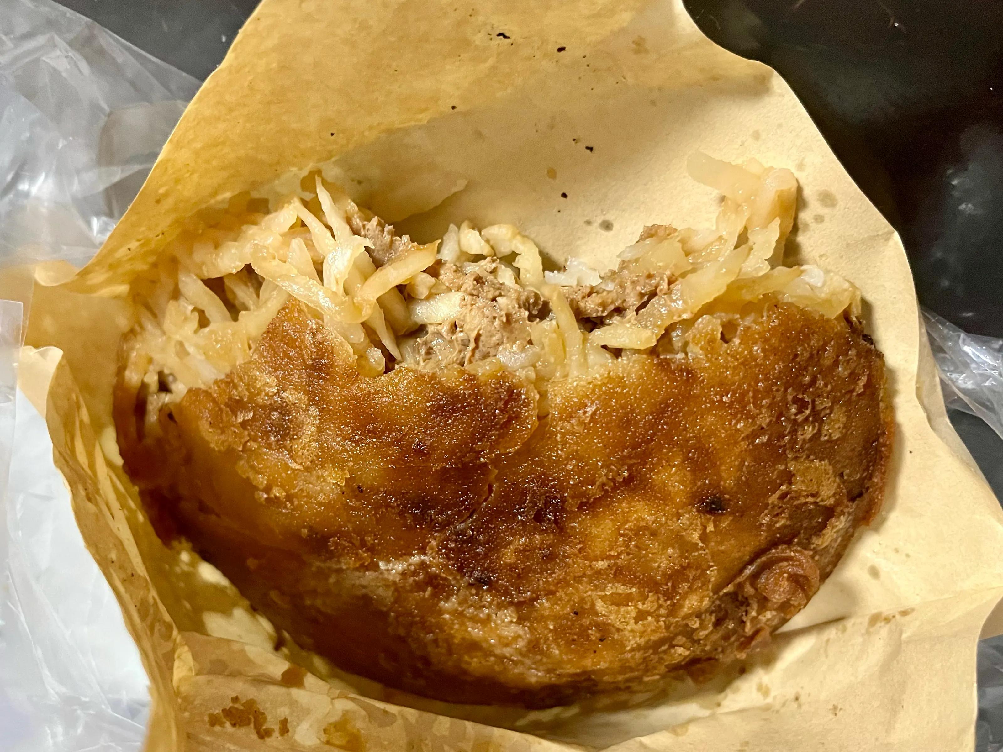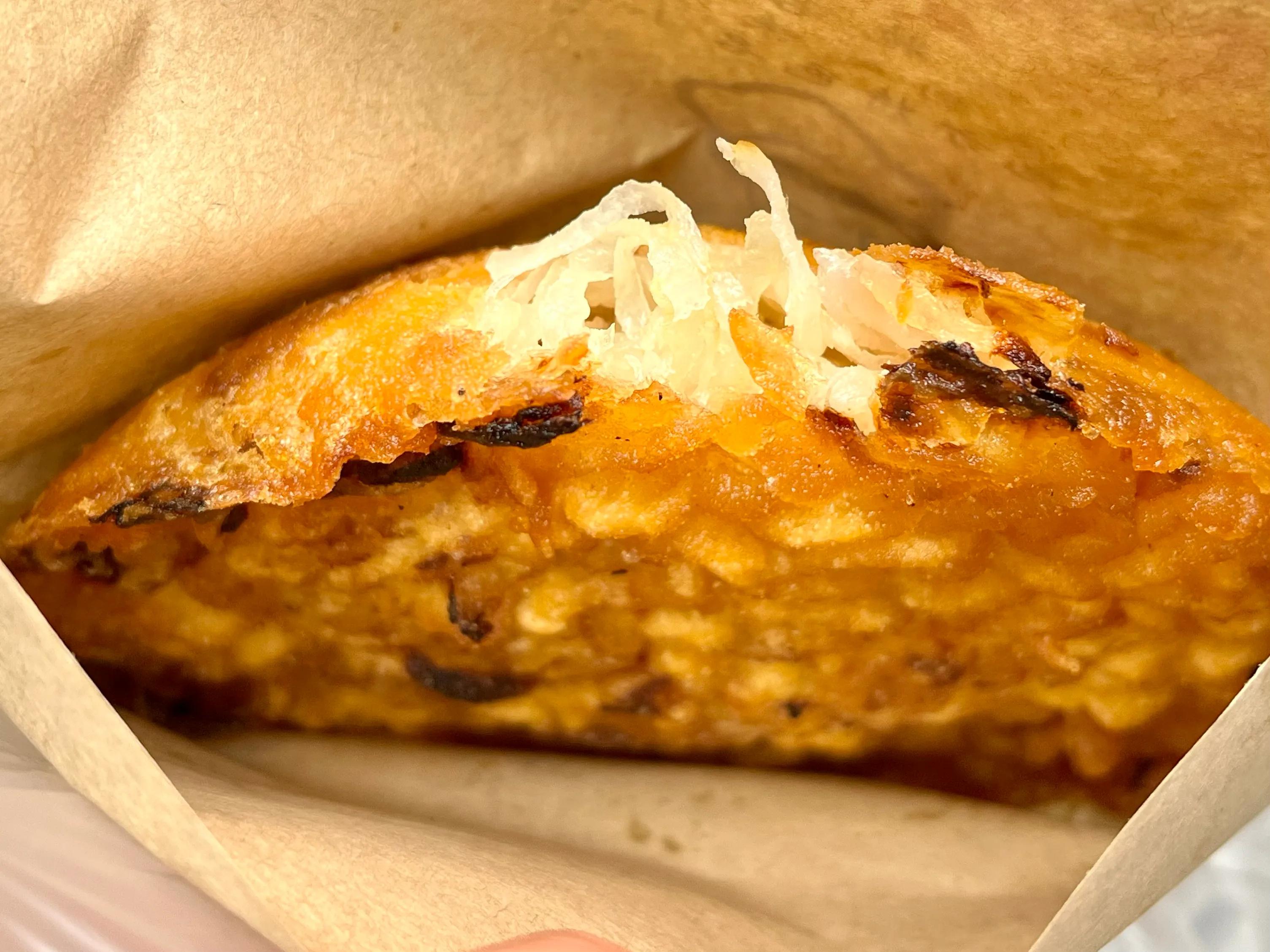 解放街买的,距离大王灯盏糕不远,15元两斤。从没吃过,就买了六个尝尝。