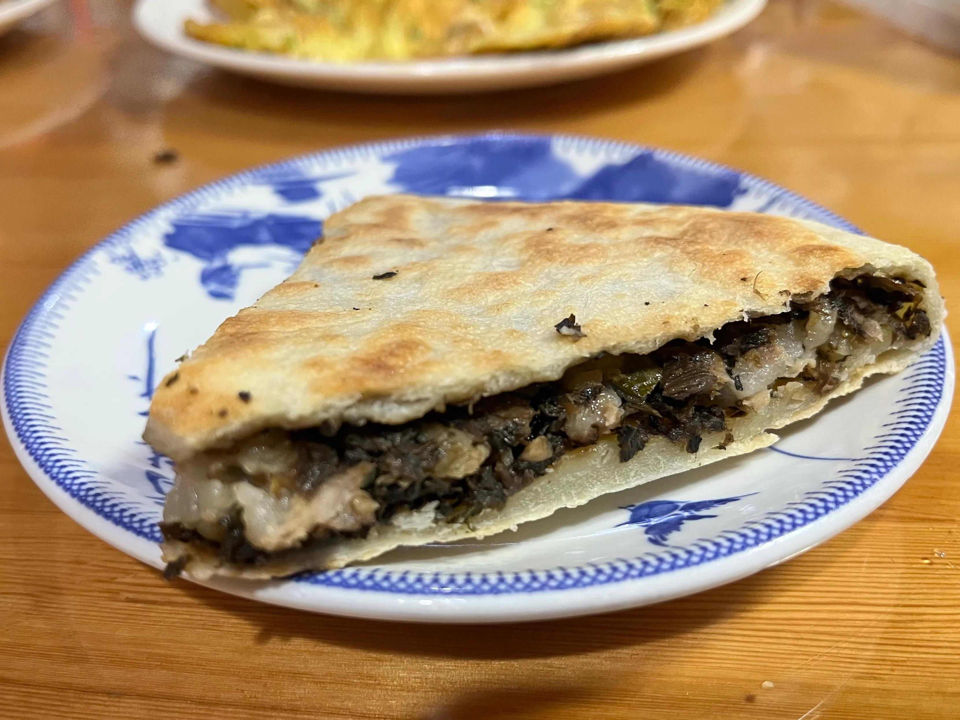 在永嘉,吃了两种麦饼,薄的和厚的。薄的像是脆饼,香脆;厚的有肉和梅干菜为馅,味道都不错。