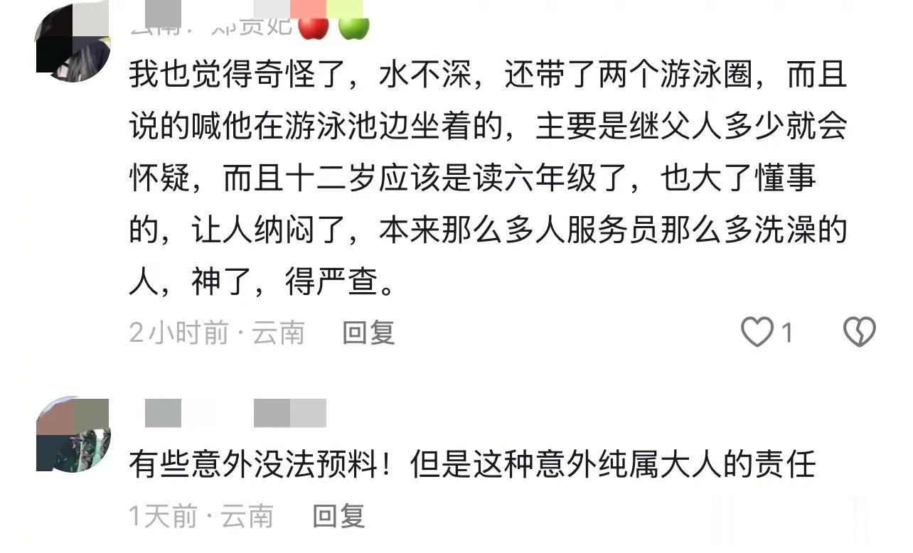 12岁男孩王某风和继父杨先生一起来泡温泉,结果男孩意外溺亡。