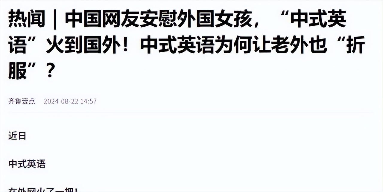 网上类似现象也多。2024年夏天,“中式英语”在国外平台突然火起来。中国网友回复外国用户时,用混合语法表达关心,句子简短直接却带温暖。