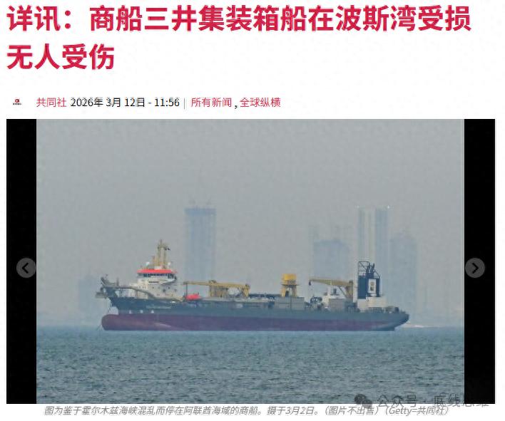 3月11日,商船三井公司证实,已确认其停泊在波斯湾的集装箱船于当地时间当日凌晨局部受损。共同社