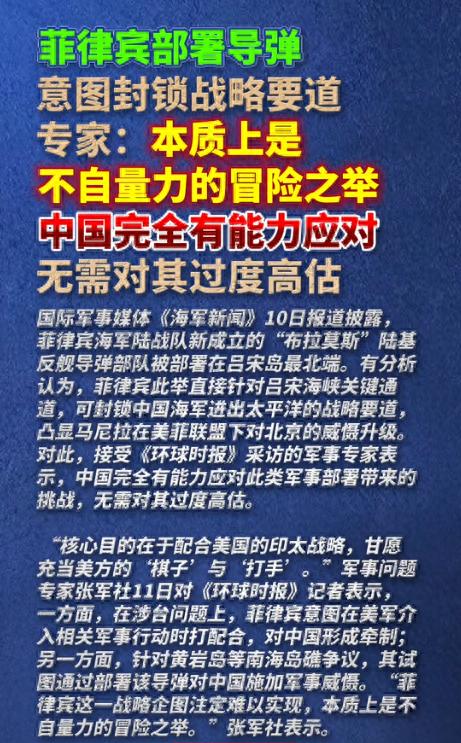 双线布防:菲律宾把导弹架在海峡口,意图封堵海军通道