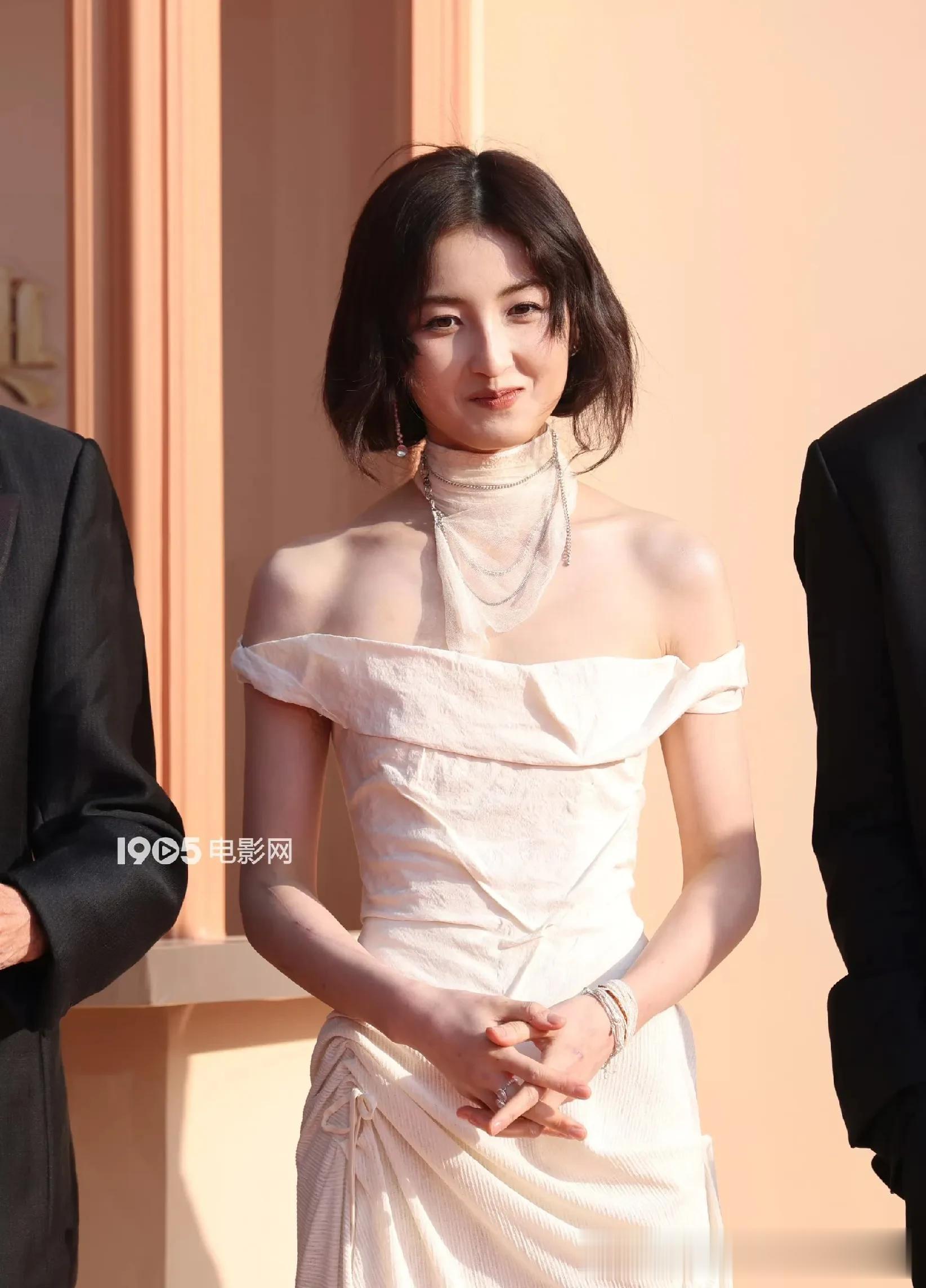同为00花的张子枫,拿下华表影后的她穿着白抹胸礼服出席,配上慵懒的扎发,整个人随性又可爱。