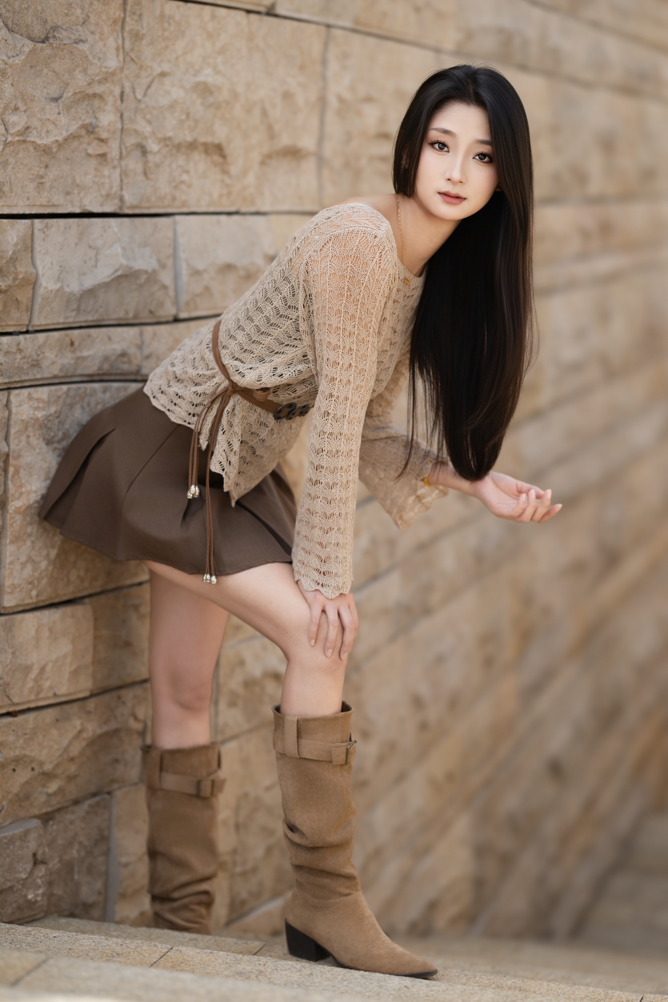 那件棕色的连衣裙将女性的优雅与贵气完美呈现,宛如一首春天的赞歌。《外拍写真》|风轻扬#摄影头条##头条摄影##人像##人