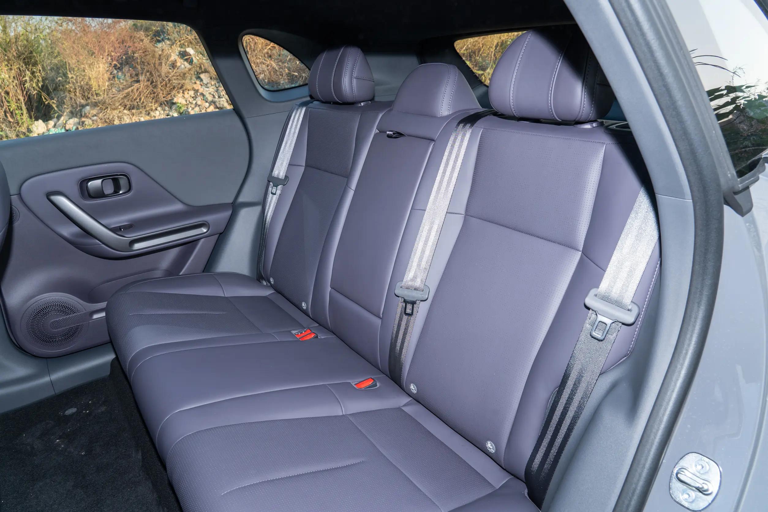 车内配备256色氛围灯,夜间行车时,调节柔和的色调,能很好地烘托座舱氛围。下班开车返程,伴着温和的灯光,一天的忙碌和疲惫,也能得到不少舒缓。座椅采用仿皮材质,支撑性表现在线,前排配备加热和通风功能,我试驾期间气温偏高,开启座椅通风后,座椅温度下降速度可观,久坐也不会闷热,能很好改善夏季暴晒后座椅发烫的问题。