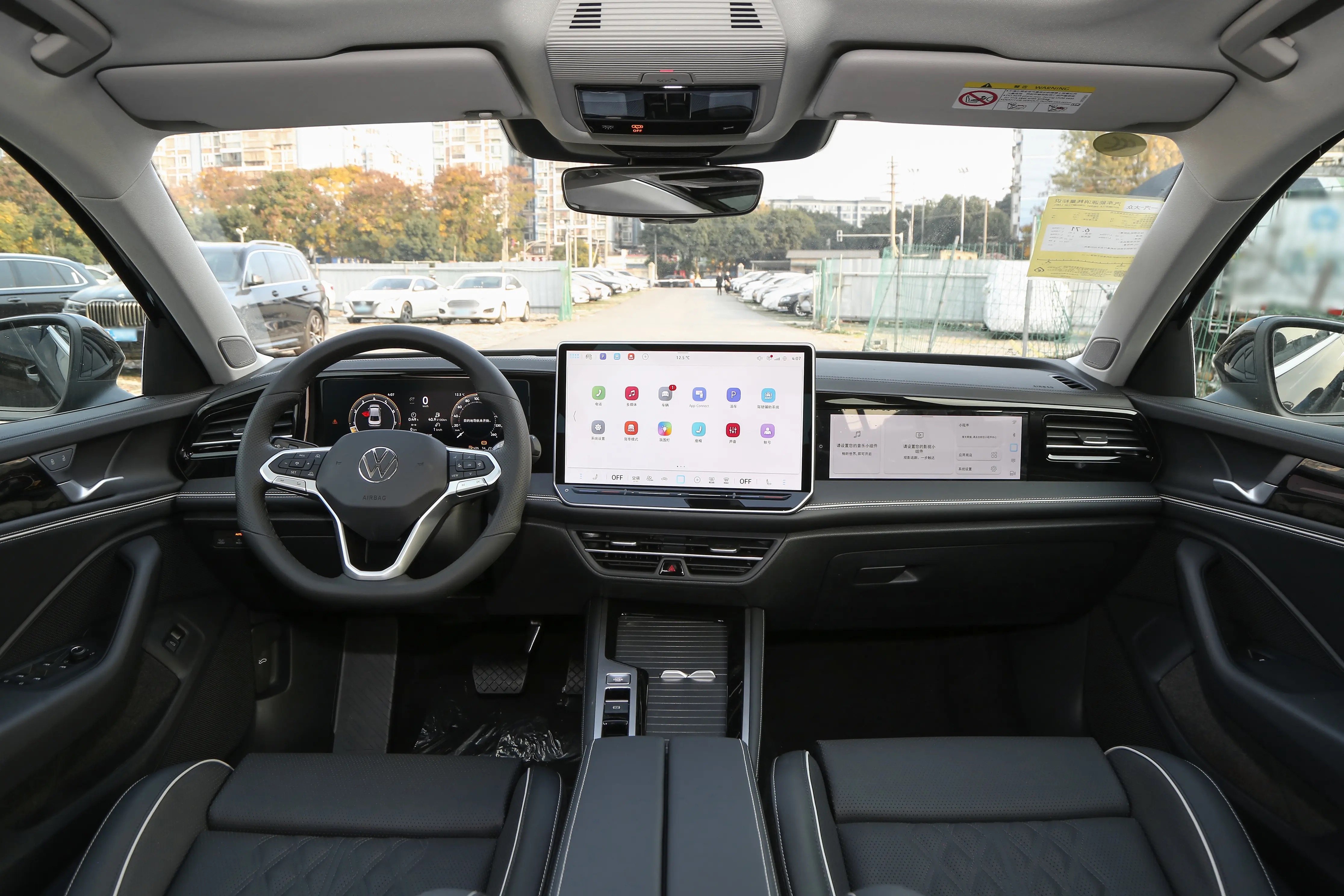 中控的三块大屏幕很抢眼,左侧10.25英寸全液晶仪表盘可显示信息丰富,车载智能芯片用的是高通骁龙8155,15英寸2K分辨率的中控屏支持导航,蓝牙/车载电话,3种手机互联,车联网,5G网络,OTA升级等功能,皮质多功能方向盘集成了旋钮式电子怀挡,前方还有7.11英寸的HUD投影,L2级智能驾驶辅助系统也给配备了。