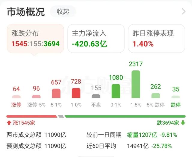 今天个股跌多涨少,接近3700家下跌,上涨仅有1500多家。谁也不要羡慕谁,因为大家手里的股票都是一样的德性,除了下跌就是下跌了。