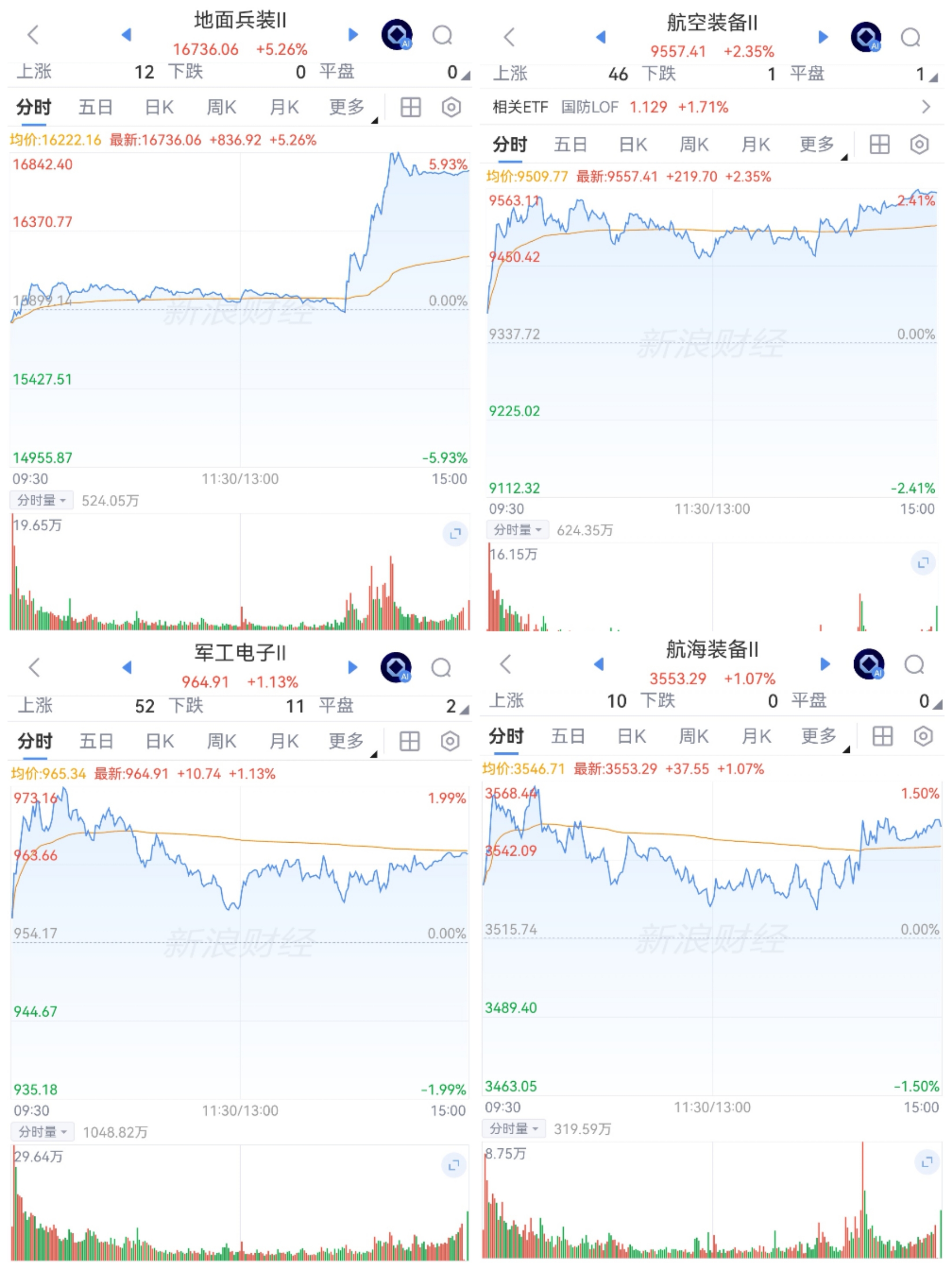 国防军工震荡分化。仅航空净买入,航天连续5天净卖出;板块大幅震荡回调探底中。