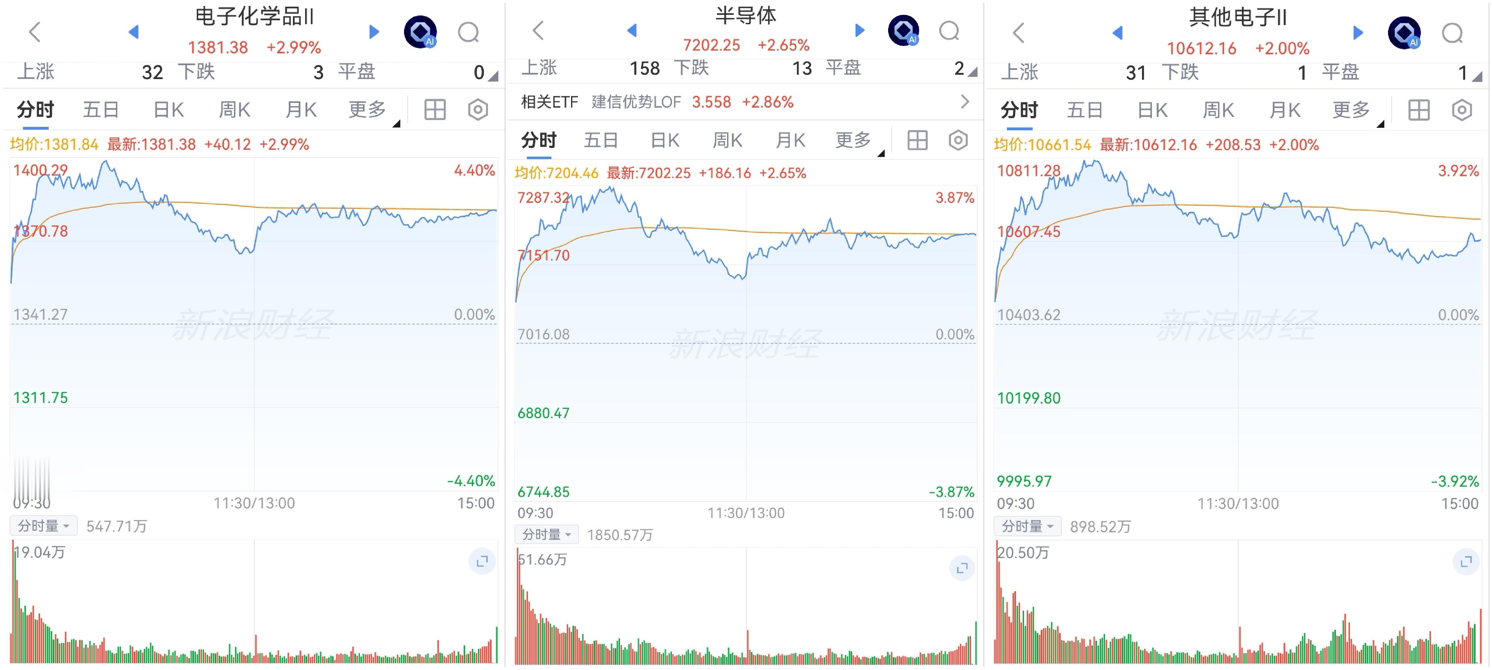 半导体板块震荡反弹。板块多数净卖出,化学品已连续10天,仅半导体连续2天净买入。板块120日均线附近、化学品接近120日均线。