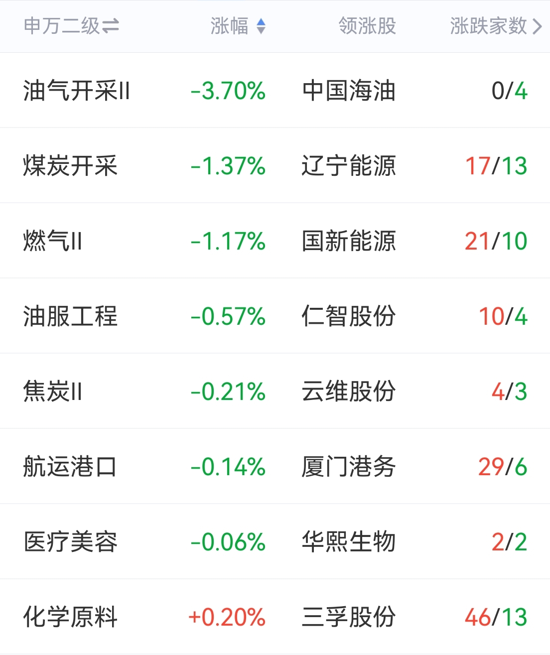 跌幅居前板块传统产业的油服油气、煤炭炼化、航运港口、医美等,热点中无,等跌幅居前。