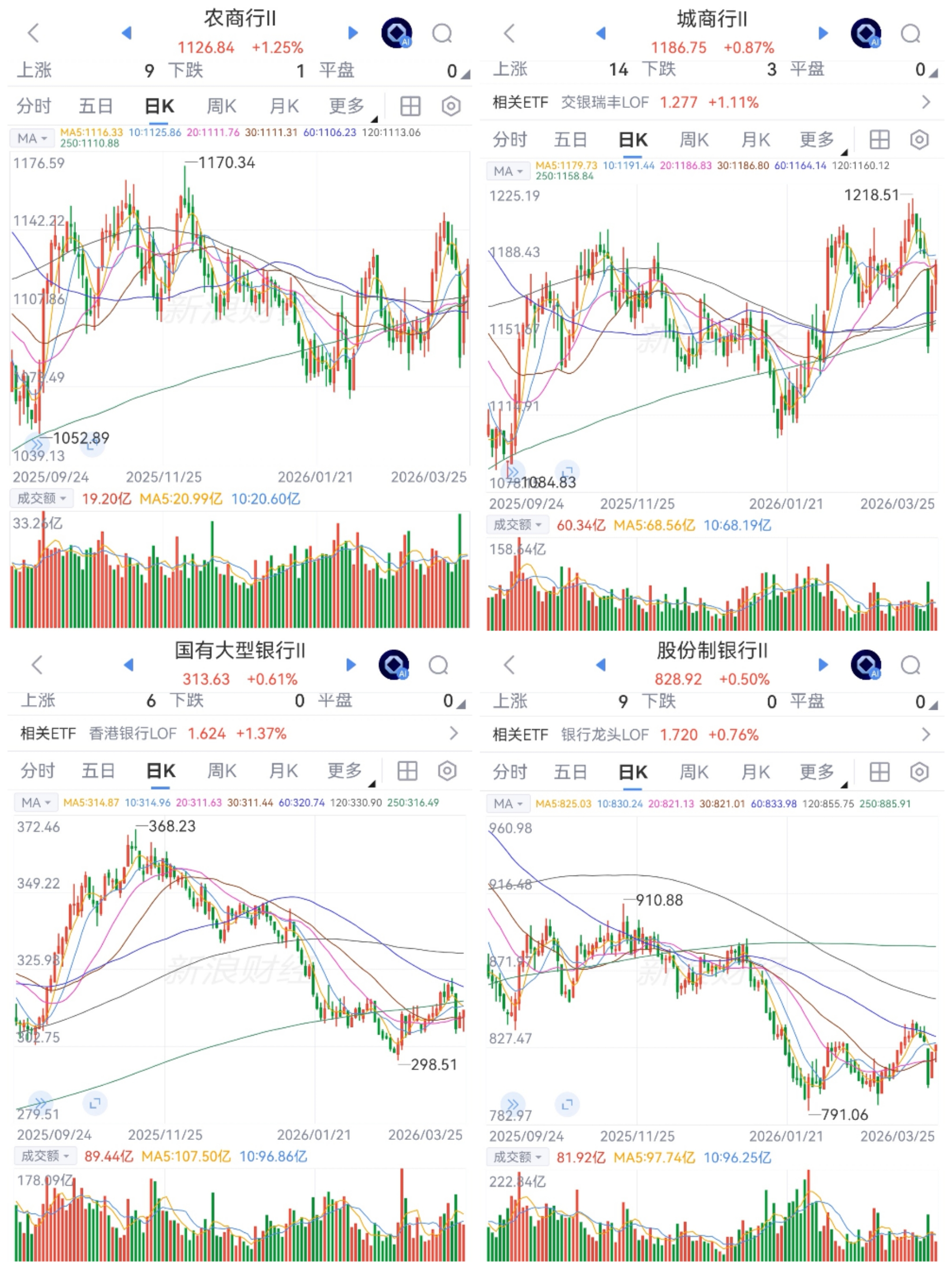 板块多数连续2天净买入。中小行和国有大行250日均线附近震荡筑底,股份制250日均线下方很远震荡筑底。