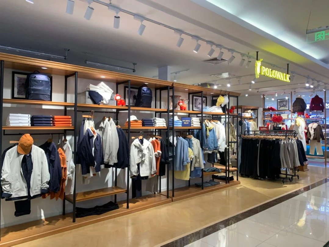 品牌避开顶级高端商圈,主攻万达、吾悦、宝龙、新华百货等大众定位的商业综合体,优先选择租金友好的楼层与铺位,与鳄鱼恤、红都男装等经典平价品牌形成业态抱团,精准锁定追求体面穿搭、预算有限的家庭客群与下沉市场消费者。