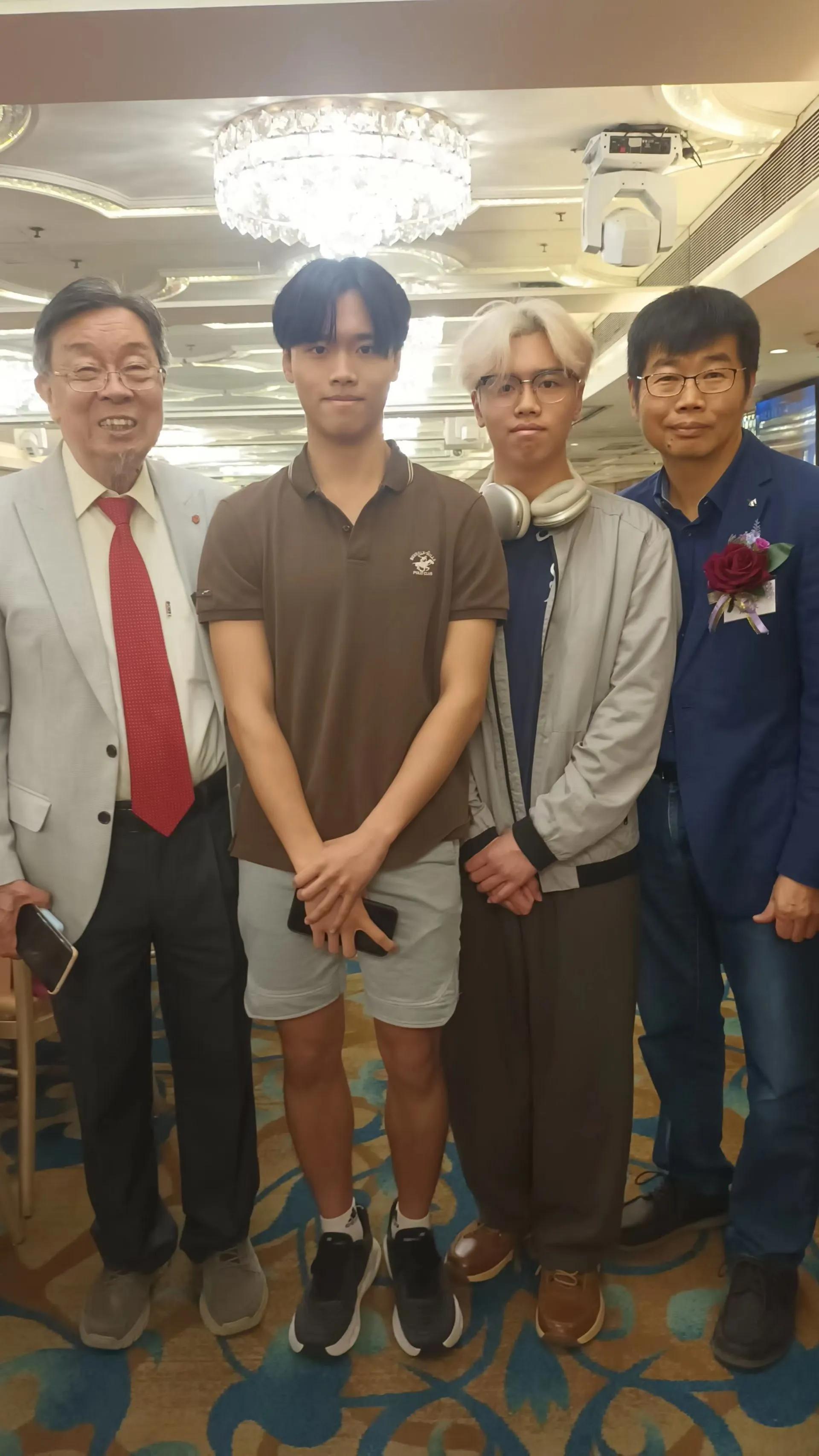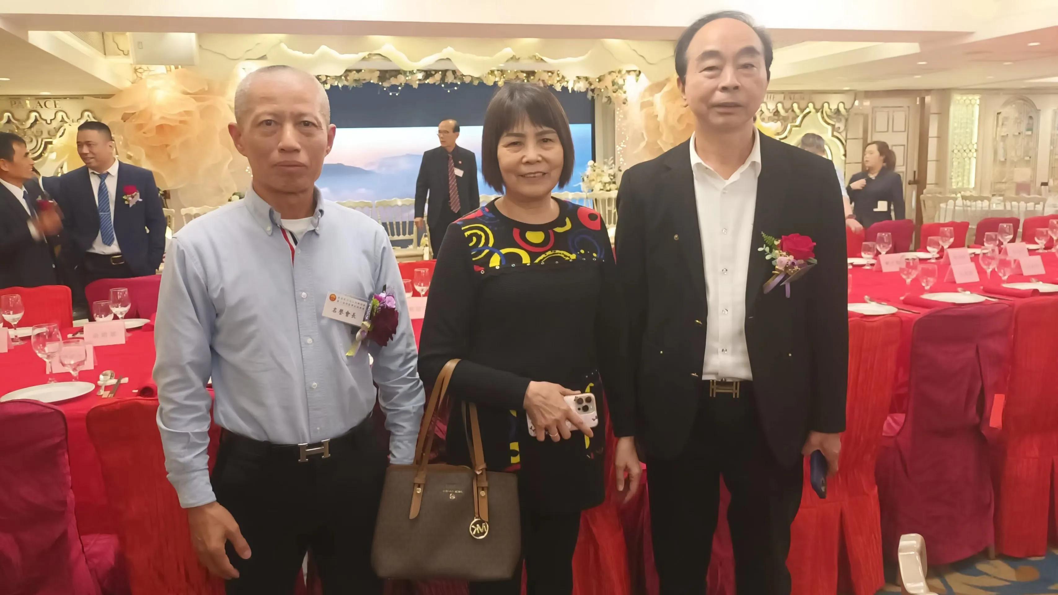 香港泉州洛江同乡总会常务副会长黄杏水先生和他的孪生儿子,左为乡会第一、二届秘书长黄仲旋先生