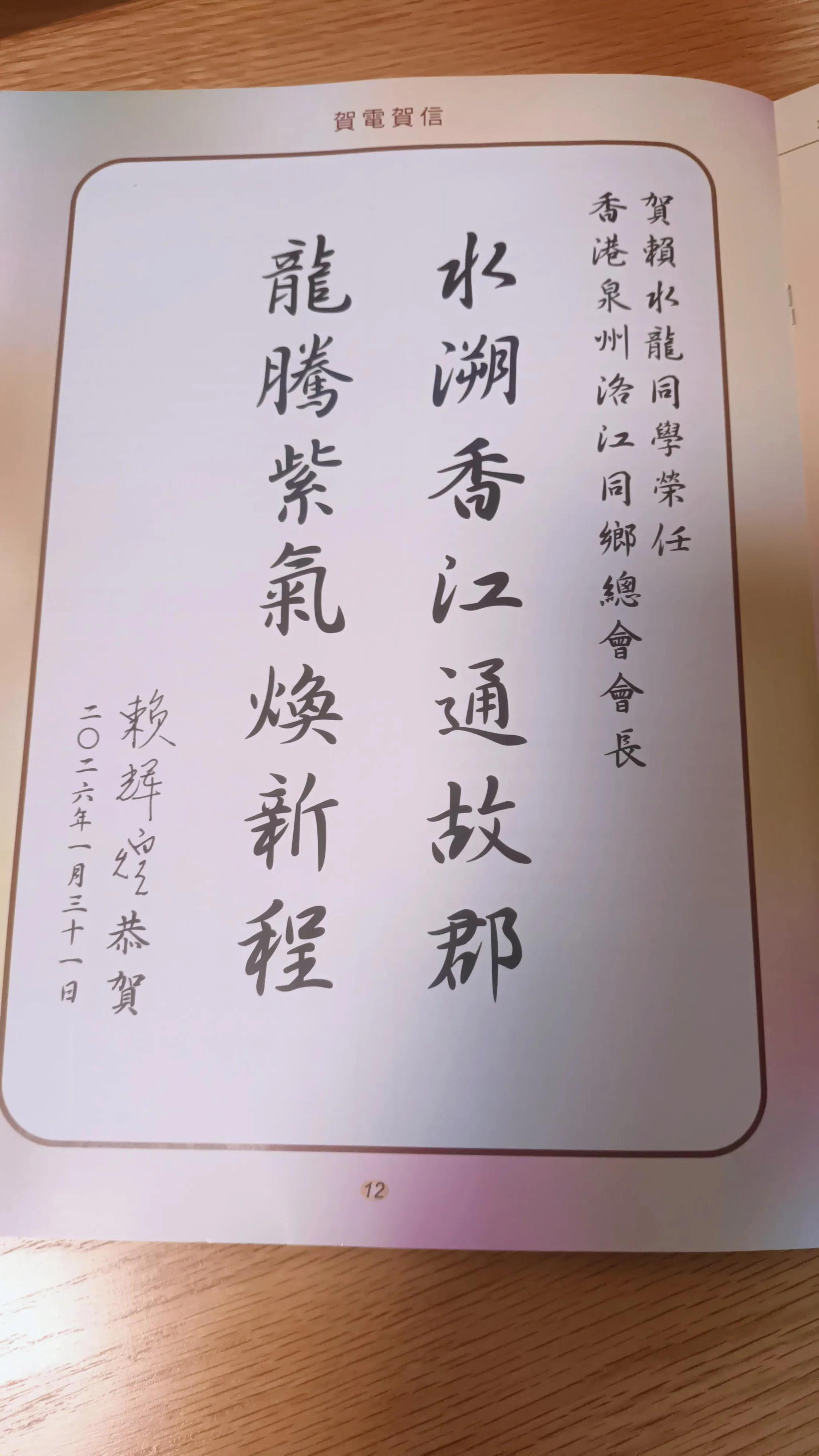 赖寿华墨迹贺乡会换届典礼