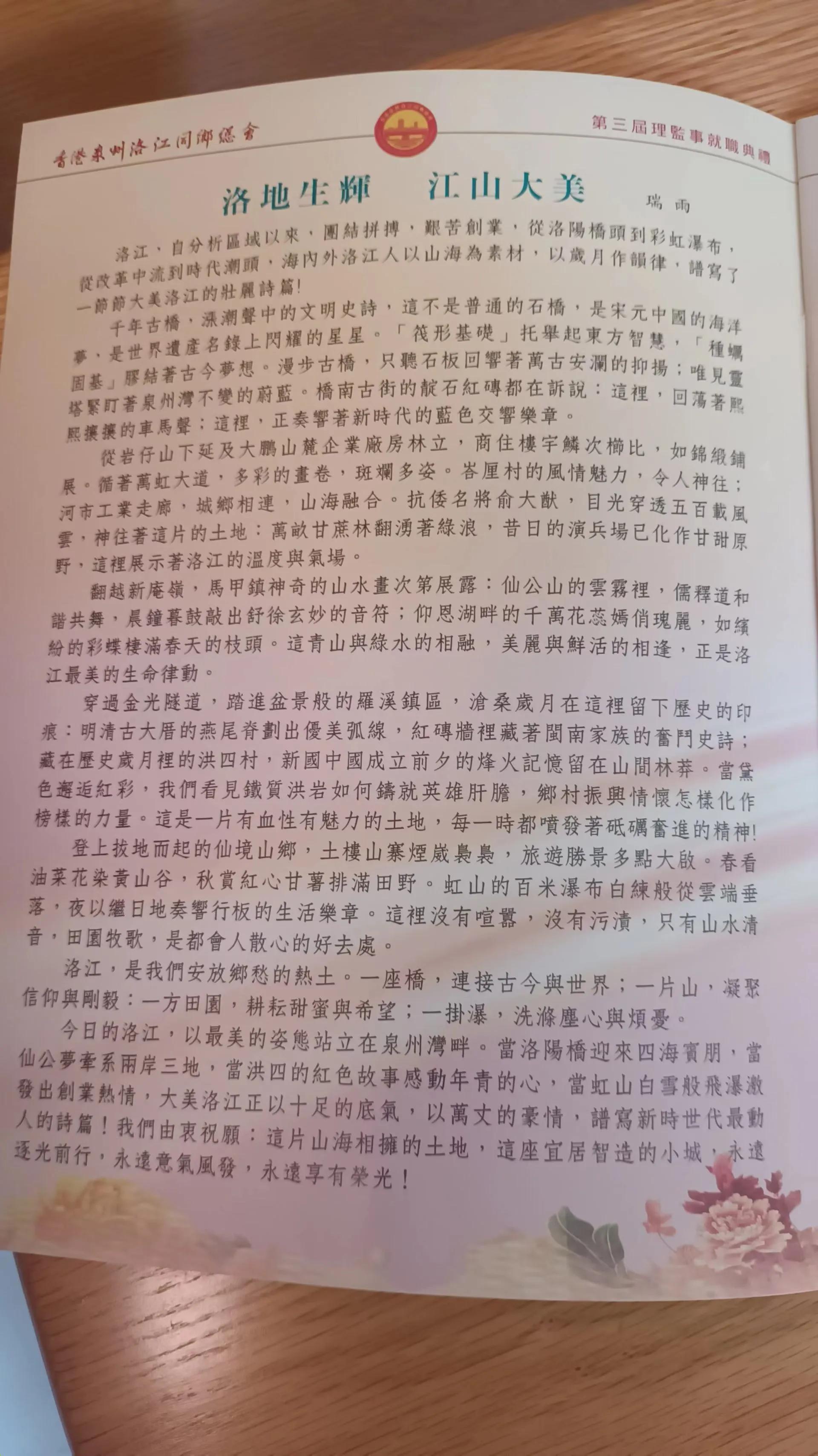 泉州市洛江区作家协会主席赖瑞禹为特刊写下讴歌家乡洛江篇章