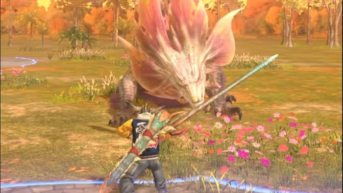 千刃龙——老熟人回归,刃鳞攻击会造成裂伤状态,走位风骚得很。这货在《怪物猎人4G》就是封面怪,现在来Now里继续教新人做人。