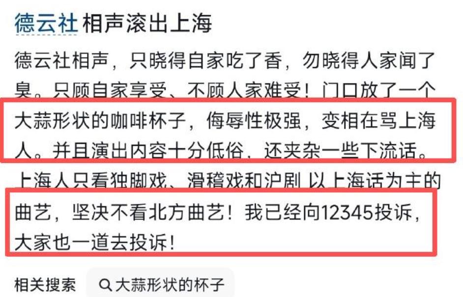 可没想到,却被部分人解读为故意挑衅,指责德云社侮辱海派文化,争议很快就升级成了激烈的地域骂战。